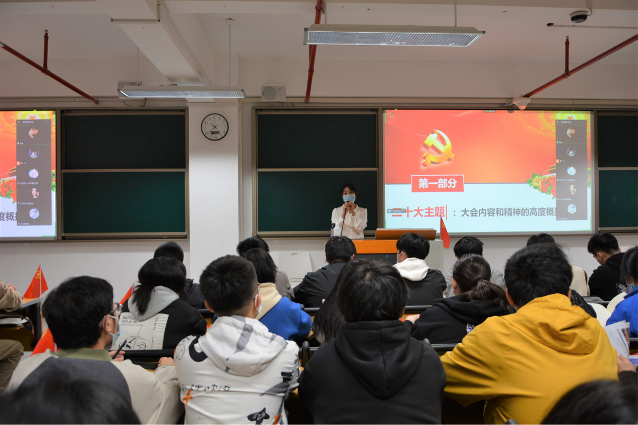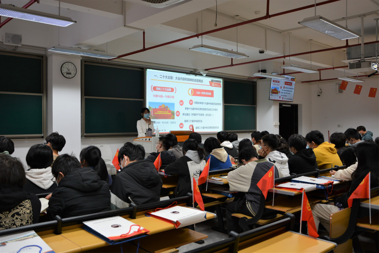 為深入學(xué)習(xí)宣傳貫徹黨的二十大精神,引導(dǎo)青年學(xué)生感悟思想偉力、汲取奮進(jìn)力量, 12月12日下午,經(jīng)濟(jì)與管理學(xué)院第二黨支部書(shū)記周秋鶯在實(shí)訓(xùn)樓507教室給22現(xiàn)代物流1班、22市場(chǎng)營(yíng)銷3班、22關(guān)務(wù)與外貿(mào)服務(wù)3班新生,開(kāi)展黨的二十大精神專題宣講會(huì)。