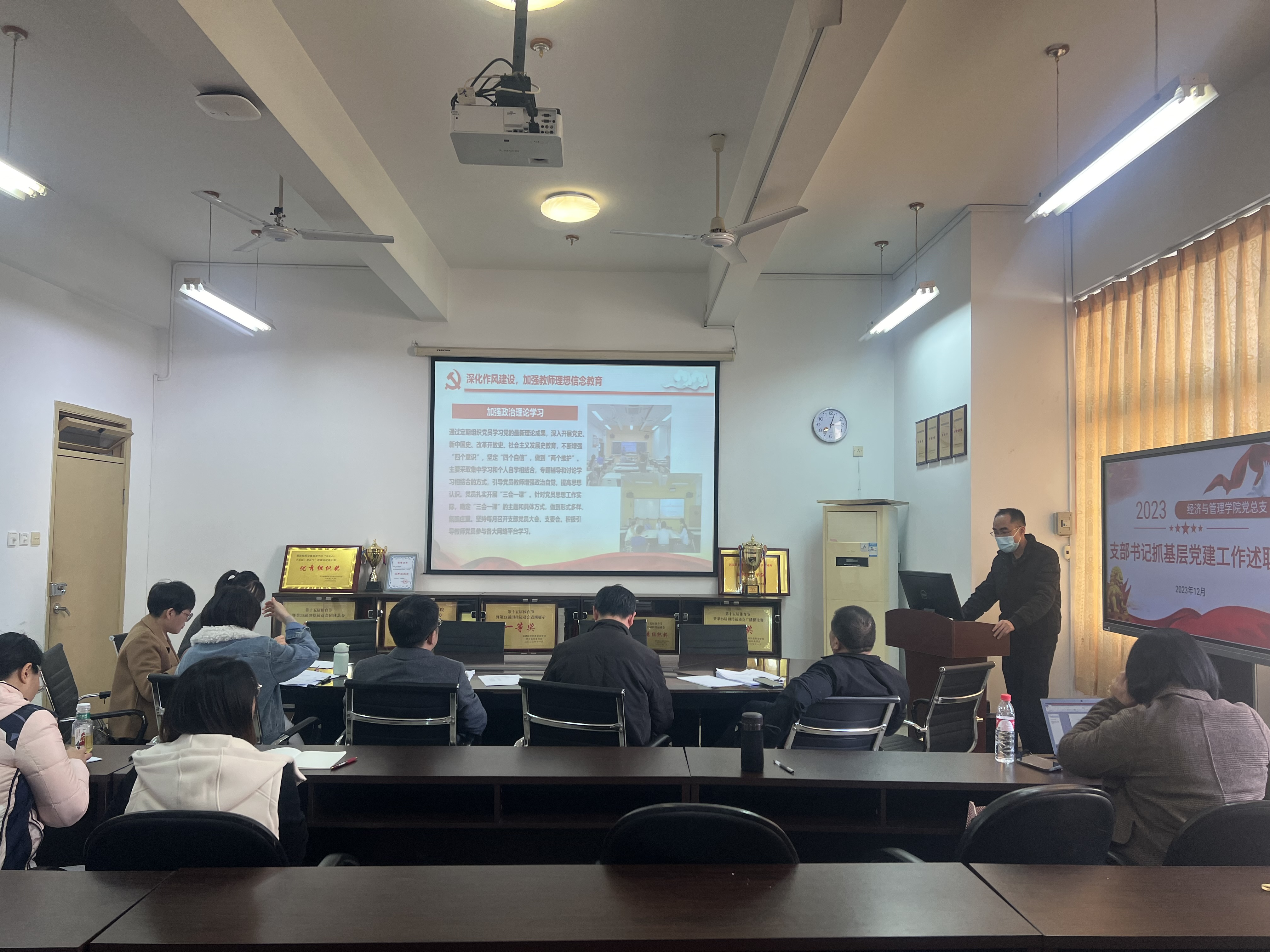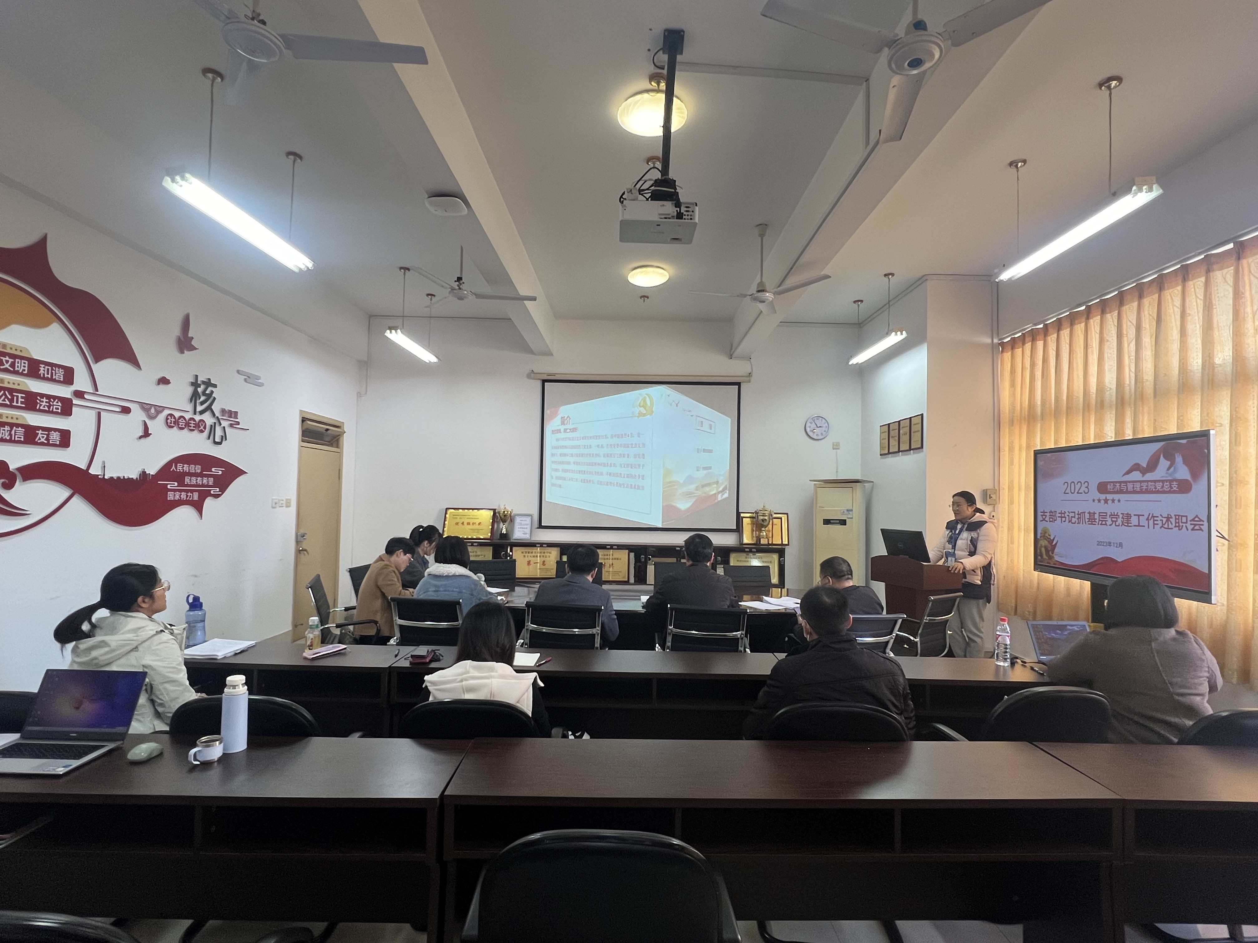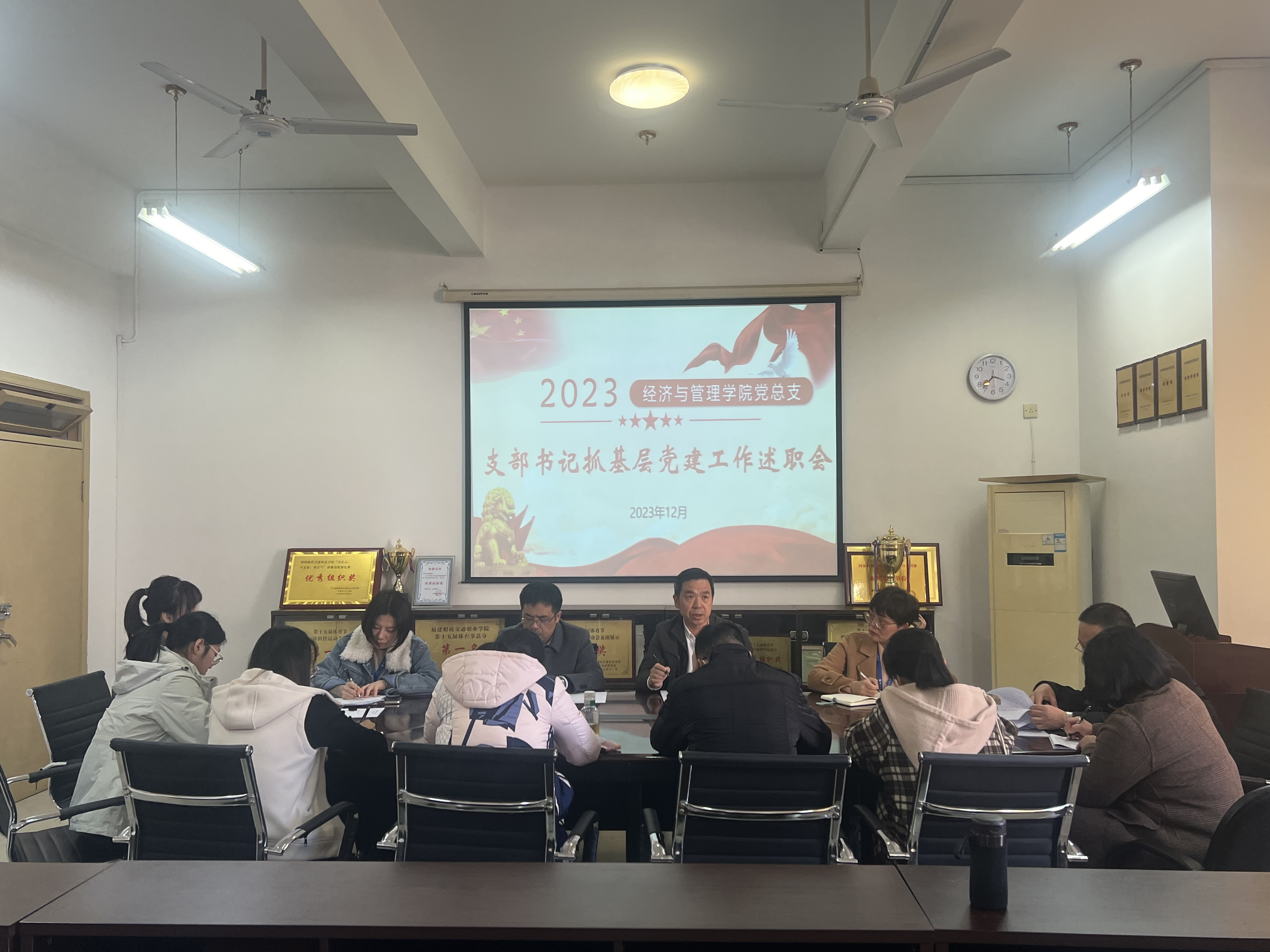 為進(jìn)一步提升基層黨組織書(shū)記履職能力,更好推動(dòng)學(xué)院各項(xiàng)工作高質(zhì)量發(fā)展,12月28日下午,經(jīng)濟(jì)與管理學(xué)院黨總支召開(kāi)2023年度基層黨組織書(shū)記抓基層黨建工作述職會(huì),以述明責(zé)、以評(píng)促干,用實(shí)干實(shí)績(jī)實(shí)效展現(xiàn)2023年“效果圖”、譜寫(xiě)2024年“新篇章”。學(xué)院副科級(jí)以上干部、各支部書(shū)記、副書(shū)記參加此次會(huì)議。