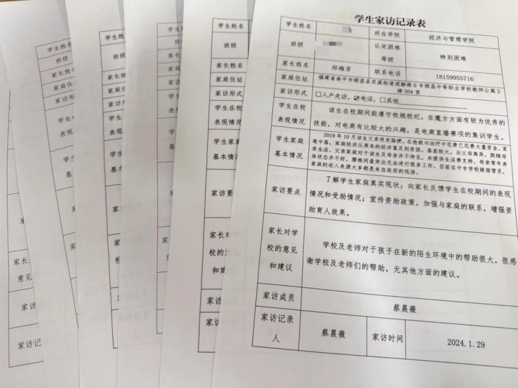 經(jīng)濟(jì)與管理學(xué)院全體輔導(dǎo)員通過(guò)電話訪談、視頻通話等線上形式,與困難生家庭進(jìn)行了聯(lián)系,確保家訪活動(dòng)的全面覆蓋。通過(guò)電話和視頻,輔導(dǎo)員與學(xué)生和家長(zhǎng)進(jìn)行了深入的交流,了解了學(xué)生在家中的學(xué)習(xí)、生活情況以及家庭狀況,并就學(xué)生在校期間的表現(xiàn)和學(xué)習(xí)情況與家長(zhǎng)進(jìn)行了反饋。同時(shí),輔導(dǎo)員還向家長(zhǎng)宣傳了學(xué)校的教育理念、課程設(shè)置和教學(xué)特色,幫助家長(zhǎng)更好地了解學(xué)校的教育教學(xué)工作,并收集了家長(zhǎng)對(duì)于學(xué)校的意見(jiàn)和建議。家訪結(jié)束后,輔導(dǎo)員認(rèn)真做好記錄,我院共收集到上百份家訪記錄表。