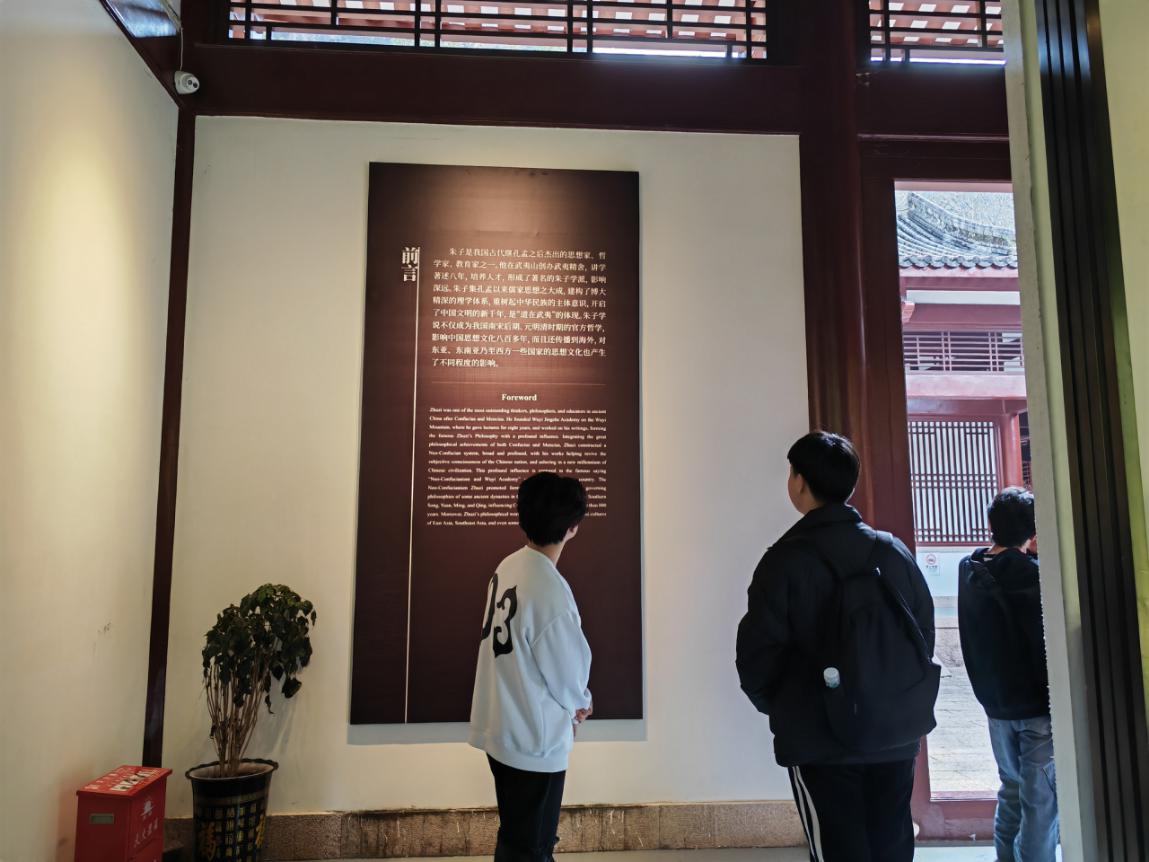 文明的長河奔流不息,中華優(yōu)秀傳統(tǒng)文化是源頭活水,為中國特色社會(huì)主義注入充沛生機(jī)。武夷山是文化與自然“雙世遺”,文化遺產(chǎn)的核心就是朱子文化。沿著習(xí)近平總書記的足跡,實(shí)踐隊(duì)成員來到了朱熹園。