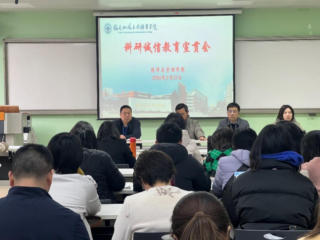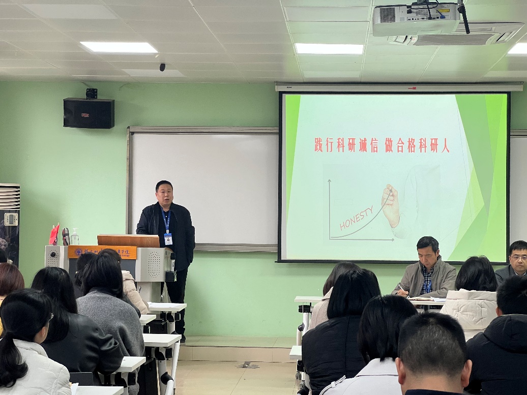 科研誠信是學(xué)術(shù)發(fā)展的基石,是科學(xué)創(chuàng)新的根本。習(xí)近平總書記強(qiáng)調(diào),要營造良好學(xué)術(shù)環(huán)境,弘揚(yáng)學(xué)術(shù)道德和科研倫理。科技創(chuàng)新是國家發(fā)展形勢所需、大勢所趨。加強(qiáng)科研誠信建設(shè),對營造良好的學(xué)術(shù)環(huán)境,引導(dǎo)科研人員堅守學(xué)術(shù)誠信、維護(hù)學(xué)術(shù)尊嚴(yán)具有重要意義。為此,經(jīng)濟(jì)與管理學(xué)院于2024年3月12日在求實樓407教室開展了“科研誠信”教育宣貫會。本次會議以講座形式開展,吳吉明副院長做“踐行科研誠信 做合格科研人”的報告,經(jīng)濟(jì)與管理學(xué)院全體教師參加了本次會議。