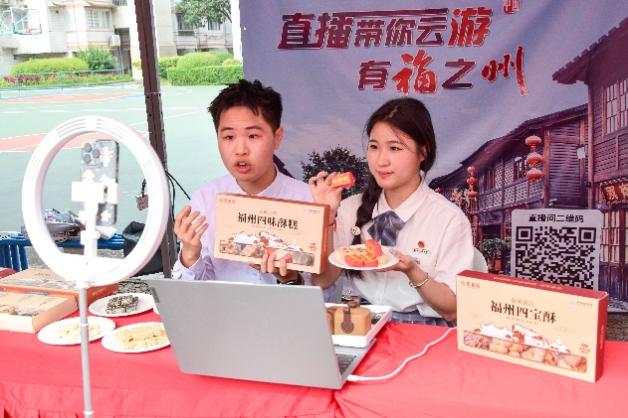 伴隨陣陣悠揚(yáng)的古琴聲,來(lái)自經(jīng)管學(xué)院直播電商協(xié)會(huì)的幾位主播,以滿(mǎn)腔熱情與專(zhuān)業(yè)精神,為線(xiàn)上線(xiàn)下的觀(guān)眾帶來(lái)了一場(chǎng)盛宴。他們把福州文旅有代表性的景點(diǎn)三坊七巷、上下杭等通過(guò)直播的方式和大家一起“云游”,同步進(jìn)行茉莉花茶、聚春園四寶酥、福州城市手繪明信片等特色產(chǎn)品的直播帶貨,實(shí)現(xiàn)了“直播+文旅+電商”的完美結(jié)合。