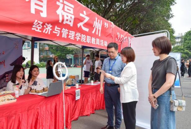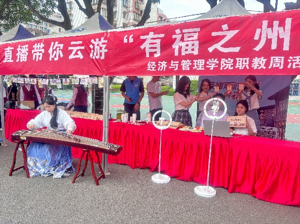 為貫徹落實(shí)習(xí)近平總書(shū)記關(guān)于職業(yè)教育的重要指示精神和黨的二十大精神,全面展示職業(yè)教育發(fā)展,深化職業(yè)教育改革成果,經(jīng)濟(jì)與管理學(xué)院于5月12日在福道園文體中心前,開(kāi)展直播帶你云游“有福之州”職教周活動(dòng)。