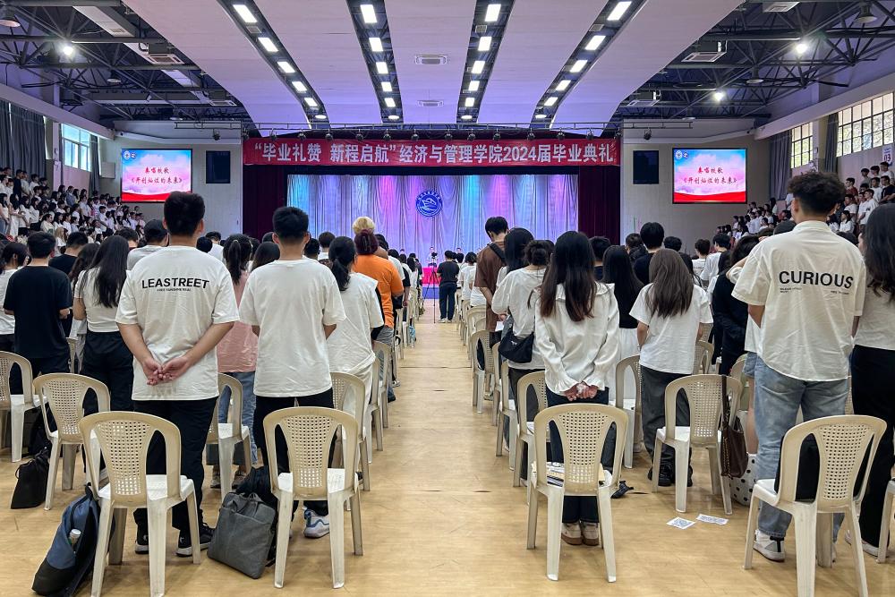 伴隨莊嚴(yán)的國歌聲,2024屆畢業(yè)典禮正式拉開帷幕。學(xué)院領(lǐng)導(dǎo)俞素平、房曰榮、林麗萍、吳吉明、林穎,各教研室主任、輔導(dǎo)員、班主任、校友代表以及2024屆全體畢業(yè)生參加儀式。典禮由副院長林穎主持。