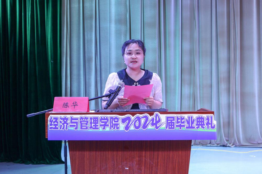 教師代表陳華老師上臺(tái)寄語。她代表全體教師向各位畢業(yè)生給予了最深的敬意和最真摯的祝福。她向同學(xué)們闡述了三點(diǎn)感悟:第一,要“鍛造匠心”,希望同學(xué)們今后無論身處何種崗位,都能以匠心獨(dú)具的態(tài)度追求卓越、不斷創(chuàng)新、鑄造輝煌;第二,要“堅(jiān)守本心”,她希望同學(xué)們面對(duì)紛繁世界時(shí),能不被外界的誘惑所動(dòng)搖,始終保持一顆純凈的心,去追求自己的理想和信念;第三,要“不忘初心”,她希望同學(xué)們始終牢記自己的初心和使命,勇于面對(duì)困難和挑戰(zhàn),不斷學(xué)習(xí)新知識(shí)和新技能,成為對(duì)社會(huì)有貢獻(xiàn)的人。