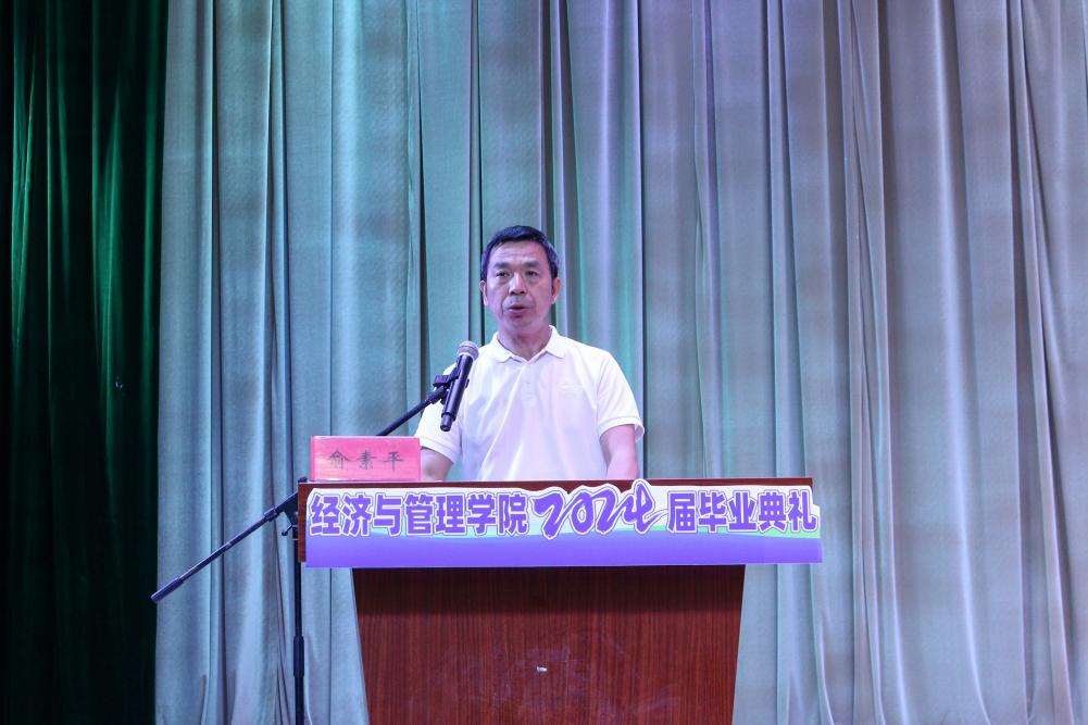 房曰榮院長在畢業(yè)典禮上滿腔熱忱地發(fā)表致辭。他向順利完成學(xué)業(yè)的2024屆畢業(yè)生表示熱烈的祝賀,向幫助同學(xué)們成長的老師們致以衷心的感謝和崇高的敬意。他回顧了這三年來同學(xué)們奮斗的足跡以及辛勤耕耘收獲的累累碩果,并向同學(xué)們提出了殷切希望:第一、守誠信,樹品格。希望同學(xué)們培養(yǎng)良好的品格和習(xí)慣,遵守社會(huì)公德和職業(yè)道德,不斷提升自己的品行修養(yǎng),為社會(huì)的發(fā)展貢獻(xiàn)力量;第二、追卓越,重實(shí)干。希望同學(xué)們賡續(xù)我?!熬媲缶芤媲竺堋毙oL(fēng),以“一鼓作氣”的干勁、“一馬當(dāng)先”的拼勁、“一往無前”的闖勁,在新時(shí)代新征程上留下青春的足跡;第三、立大志,擔(dān)使命。希望同學(xué)們樹立遠(yuǎn)大的理想和抱負(fù),自覺將社會(huì)責(zé)任銘記于心、付諸行動(dòng),將個(gè)人夢(mèng)想融入民族復(fù)興的偉大事業(yè),讓青春在時(shí)代浪潮中激蕩出澎湃的浪花。