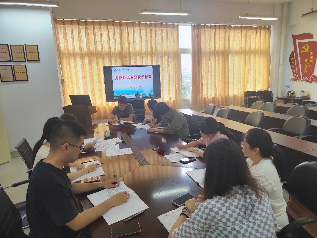 支部副書記吳霜婷領(lǐng)學(xué)了《教育部關(guān)于印發(fā)<新時(shí)代高校教師職業(yè)行為十項(xiàng)準(zhǔn)則>《新時(shí)代高校教師職業(yè)行為十項(xiàng)準(zhǔn)則》以及《福建船政交通職業(yè)學(xué)院教師職業(yè)行為負(fù)面清單及失德失范行為處理辦法》,希望支部教師黨員全面理解和準(zhǔn)確把握有關(guān)內(nèi)容和要求,認(rèn)真對(duì)照檢視自身,共同促進(jìn)完善師德師風(fēng)建設(shè)長(zhǎng)效機(jī)制。
