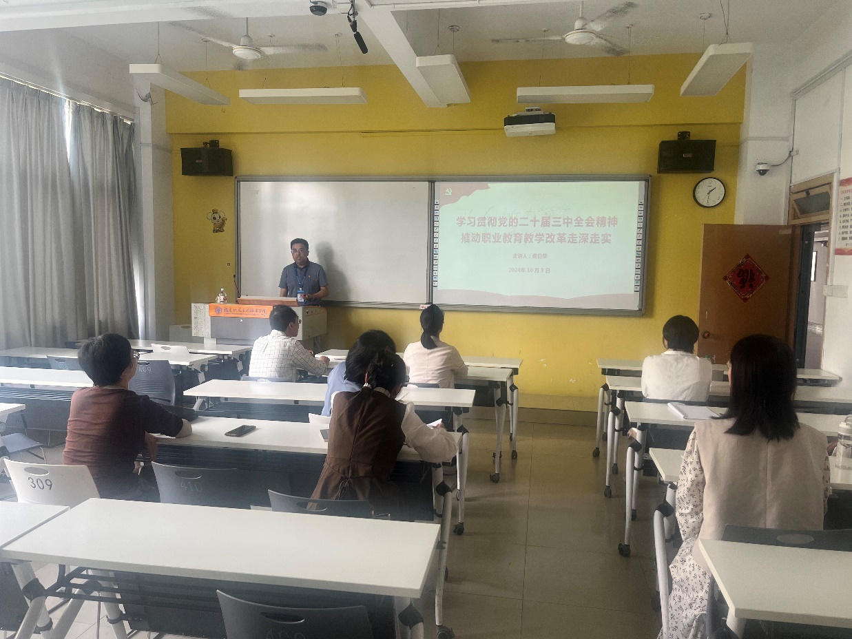 房曰榮院長(zhǎng)指出全會(huì)審議通過(guò)的《中共中央關(guān)于進(jìn)一步全面深化改革、推進(jìn)中國(guó)式現(xiàn)代化的決定》,是在新的歷史起點(diǎn)上推進(jìn)全面深化改革的又一次總動(dòng)員、總部署。要深入學(xué)習(xí)全會(huì)精神,將學(xué)習(xí)成果轉(zhuǎn)化為推動(dòng)職業(yè)教育教學(xué)改革的具體行動(dòng)。要深化產(chǎn)教融合、校企合作,創(chuàng)新人才培養(yǎng)模式,構(gòu)建教學(xué)標(biāo)準(zhǔn)體系,健全教學(xué)質(zhì)量管理和保障制度,全面提高職業(yè)教育人才培養(yǎng)質(zhì)量。