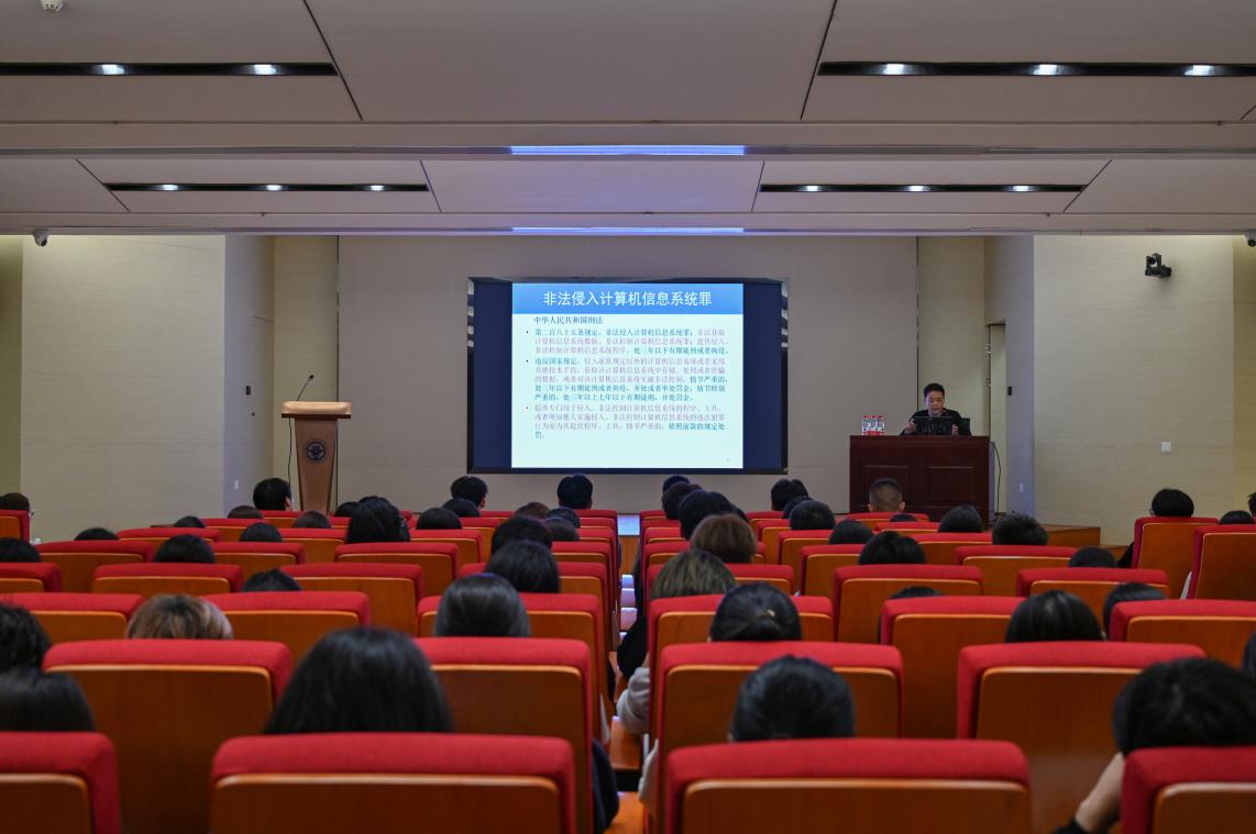 首先,高松濤部長通過實例向同學們詳細科普“非法侵入計算機信息系統(tǒng)罪”和“幫助信息網絡犯罪活動罪”兩條法規(guī);其次通過真實的網絡安全事件和網絡詐騙案例,分析當下在使用網絡過程中面臨的數據安全和個人信息數據泄露問題,重點講述了非法獲取個人信息的各種詐騙手段;最后就如何建立起網絡安全思維提出了系統(tǒng)全面、可操作性強的建議,并強調國家對計算機信息安全的重視以及不正當使用網絡技術的危害。鼓勵同學們既要學會合法,拒踩紅線,也要學會反詐,保護自己。