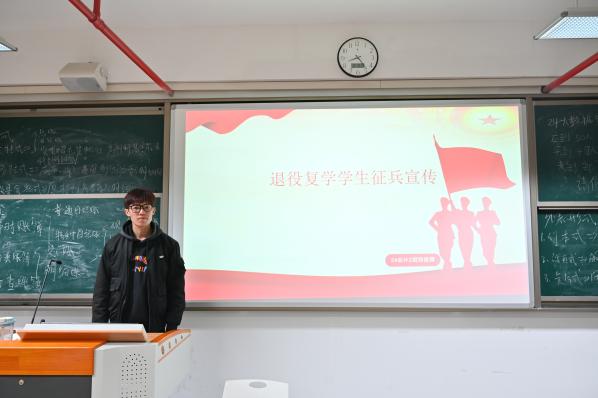 我院退役復(fù)學(xué)學(xué)生代表鄭俊霖、楊望豪和洪宇捷,為同學(xué)們帶來(lái)了生動(dòng)而深刻的分享。他們不僅展示了在部隊(duì)中的訓(xùn)練日常和服役經(jīng)歷,深入介紹了參軍的優(yōu)待政策和報(bào)名流程,以及參軍政策的深遠(yuǎn)意義,還通過(guò)自己的親身經(jīng)歷,詮釋了軍人的責(zé)任與擔(dān)當(dāng),展現(xiàn)了軍人的堅(jiān)韌不拔和多元魅力。