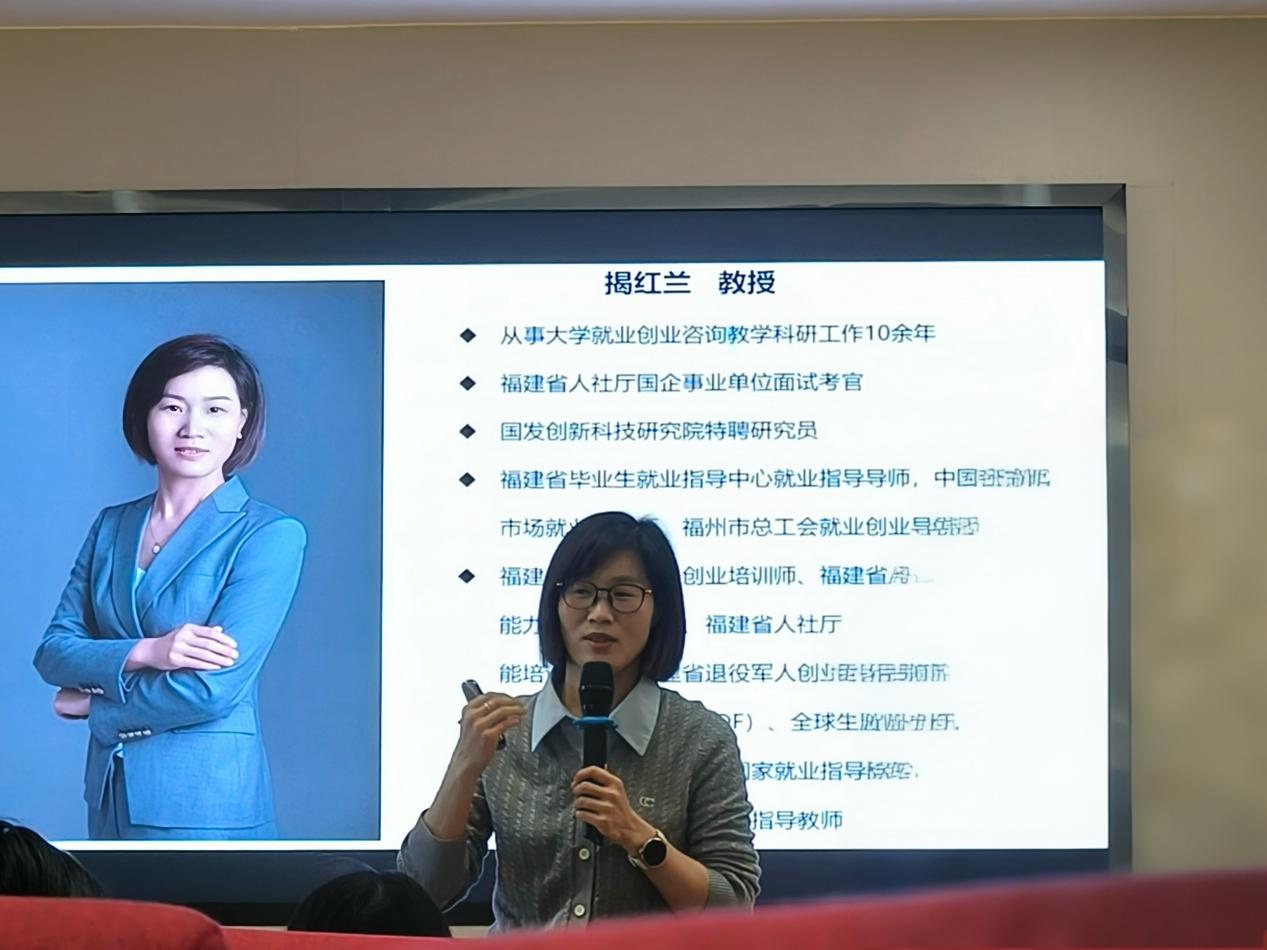 為深入學(xué)習(xí)貫徹黨的二十大精神,有效助力學(xué)生增強(qiáng)行業(yè)認(rèn)知、挖掘潛能優(yōu)勢(shì)、提升就業(yè)能力,扎實(shí)推進(jìn)落實(shí)快就業(yè)、好就業(yè)、穩(wěn)就業(yè),2025年3月19日下午,經(jīng)濟(jì)與管理學(xué)院在福船園藝新樓304學(xué)術(shù)報(bào)告廳舉辦了“智啟新程:會(huì)計(jì)專業(yè)學(xué)生的就業(yè)突圍之道”講座。講座由福建江夏學(xué)院工商管理學(xué)院揭紅蘭教授主講,我院2023級(jí)大數(shù)據(jù)與會(huì)計(jì)專業(yè)學(xué)生參與了講座。