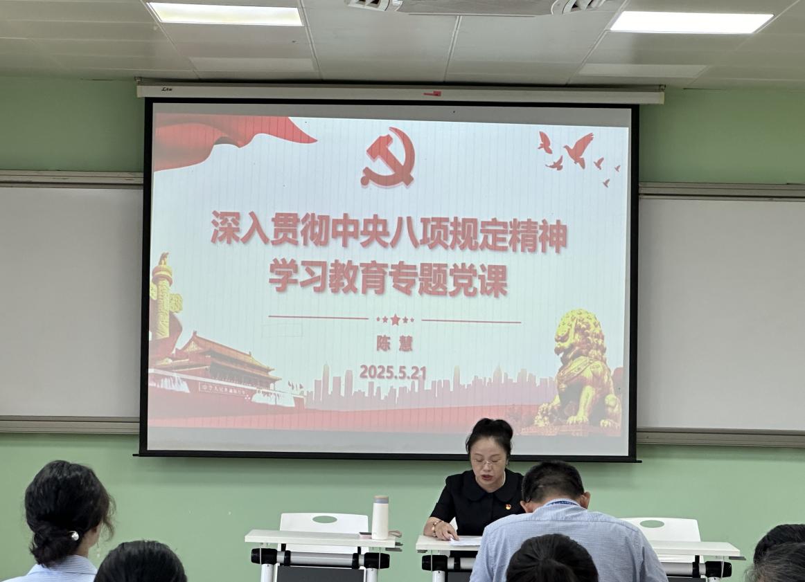 黨課上,陳慧書記圍繞 “為什么要開展深入貫徹中央八項規(guī)定精神學(xué)習(xí)教育”“怎么貫徹中央八項規(guī)定精神”“我們要做什么” 三個關(guān)鍵維度展開深入講解。她指出,開展中央八項規(guī)定精神學(xué)習(xí)教育,是推進黨的自我革命、保持黨的先進性和純潔性的必然要求,對推進作風(fēng)建設(shè)常態(tài)化長效化,為全面深化改革、推進中國式現(xiàn)代化提供有力保障,具有重大深遠意義。
