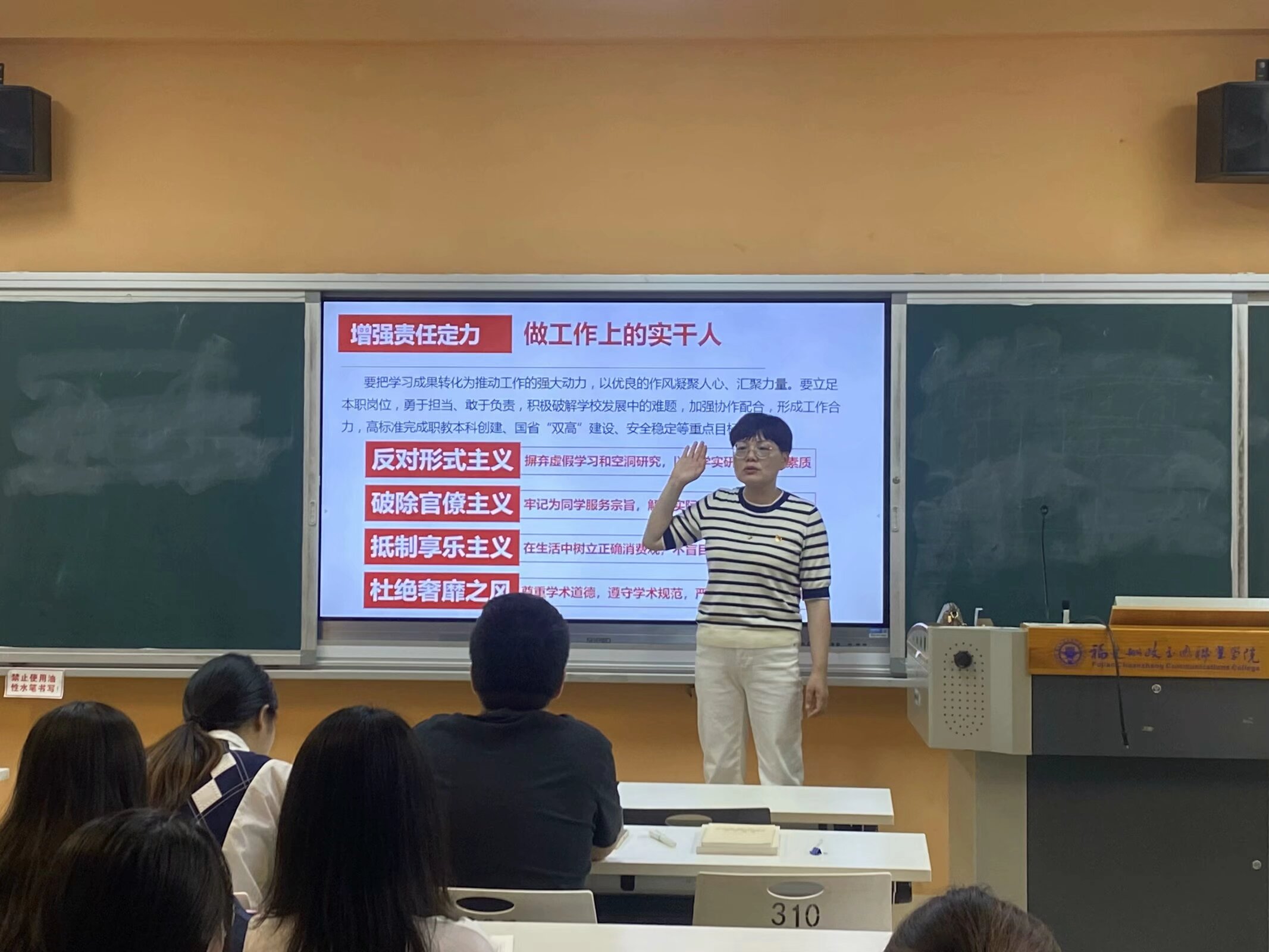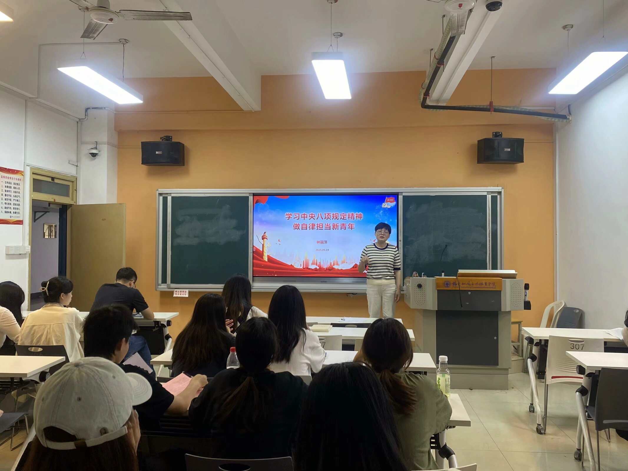 為深入貫徹落實中央八項規(guī)定精神,扎實推進畢業(yè)生黨員廉潔教育走深走實。5月19日,經(jīng)濟與管理學院第一黨支部書記林麗萍以《學習中央八項規(guī)定精神 做自律擔當新青年》為題,在求實樓406為全體畢業(yè)生黨員講授深入貫徹中央八項規(guī)定精神學習教育專題黨課。
