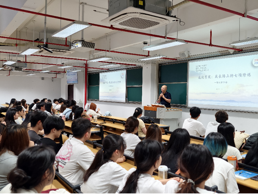 在主題分享環(huán)節(jié),鄭繼瀚校友結(jié)合自身職業(yè)發(fā)展軌跡,從多個(gè)維度為學(xué)弟學(xué)妹們傳授寶貴經(jīng)驗(yàn)。談及心態(tài)建設(shè),強(qiáng)調(diào)保持樂觀、堅(jiān)韌心態(tài)的重要性;在目標(biāo)規(guī)劃方面,他講述自己從基層業(yè)務(wù)員做起,憑借清晰的職業(yè)目標(biāo),一步步實(shí)現(xiàn)個(gè)人價(jià)值的歷程,同時(shí)激勵(lì)同學(xué)們明確奮斗方向;針對(duì)時(shí)間管理,他分享了自己合理規(guī)劃工作與學(xué)習(xí)時(shí)間的方法,強(qiáng)調(diào)高效利用時(shí)間對(duì)個(gè)人成長(zhǎng)的關(guān)鍵作用。此外,他還圍繞人際關(guān)系經(jīng)營(yíng)、持續(xù)學(xué)習(xí)進(jìn)步、優(yōu)秀特質(zhì)培養(yǎng)以及勇于嘗試改變等方面,結(jié)合企業(yè)管理和行業(yè)發(fā)展實(shí)際,深入淺出地展開講解。