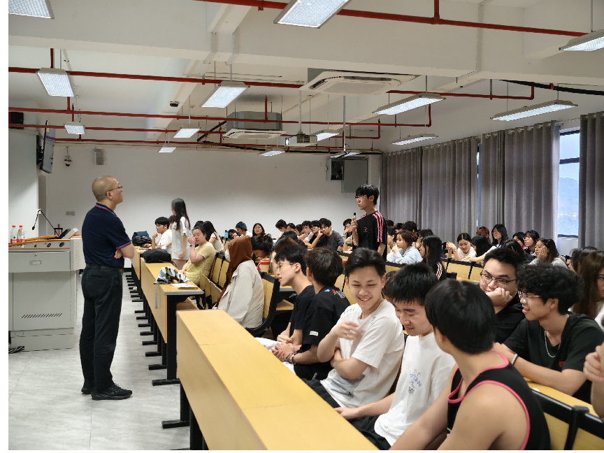 在互動(dòng)交流環(huán)節(jié),現(xiàn)場(chǎng)氣氛熱烈。同學(xué)們踴躍提問,內(nèi)容涵蓋關(guān)務(wù)與外貿(mào)服務(wù)專業(yè)的職業(yè)發(fā)展前景、行業(yè)技能提升路徑、職場(chǎng)人際關(guān)系處理等多個(gè)方面。鄭繼瀚校友耐心細(xì)致地逐一解答,結(jié)合自身經(jīng)驗(yàn)和行業(yè)發(fā)展趨勢(shì),為同學(xué)們提供切實(shí)可行的建議。他鼓勵(lì)同學(xué)們珍惜在校時(shí)光,扎實(shí)學(xué)好專業(yè)知識(shí),積極參加實(shí)踐活動(dòng),不斷提升自身綜合素質(zhì)。
