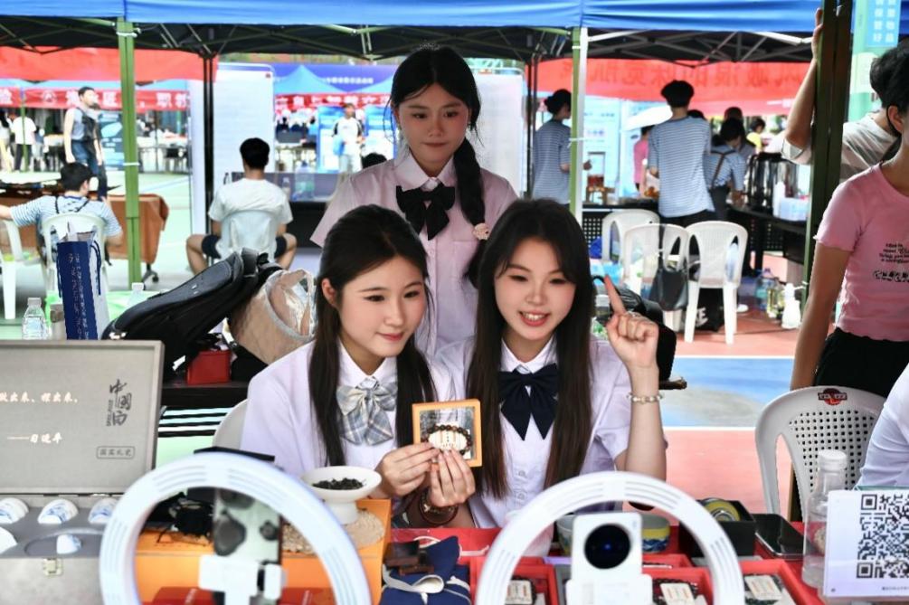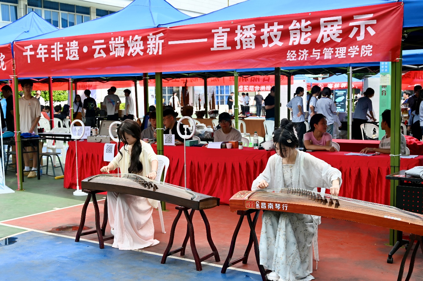 為積極響應(yīng)職業(yè)教育活動(dòng)周號召,深化產(chǎn)教融合,提升學(xué)生實(shí)踐能力,5月17日在福道園文體中心前,經(jīng)濟(jì)與管理學(xué)院開展了“千年非遺?云端煥新——直播技能展示”2025年職教周活動(dòng)。