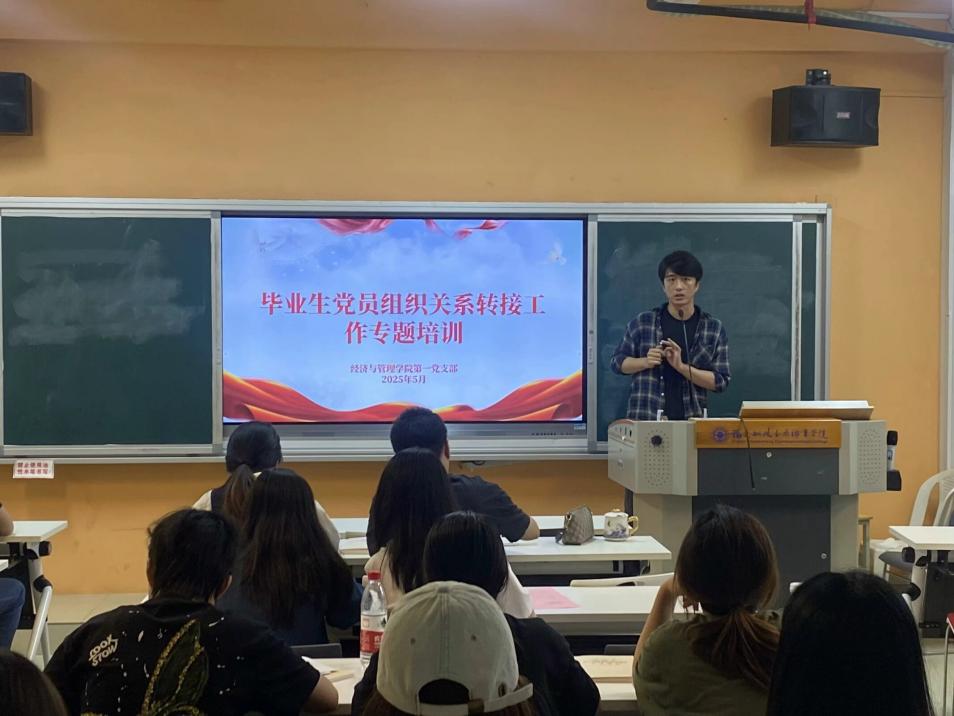 為確保畢業(yè)生黨員組織關(guān)系的順利轉(zhuǎn)接,切實解決畢業(yè)生黨員在轉(zhuǎn)接過程中可能遇到的困惑與難題,支部精心組織專題培訓(xùn)會。支部組織委員詳細解讀了轉(zhuǎn)接流程、注意事項及常見問題解決方案,提醒畢業(yè)生黨員要關(guān)注轉(zhuǎn)接的時間節(jié)點,避免因超時而導(dǎo)致轉(zhuǎn)接失??;要注意信息填寫的準(zhǔn)確性和完整性,防止因小失誤影響轉(zhuǎn)接進度。