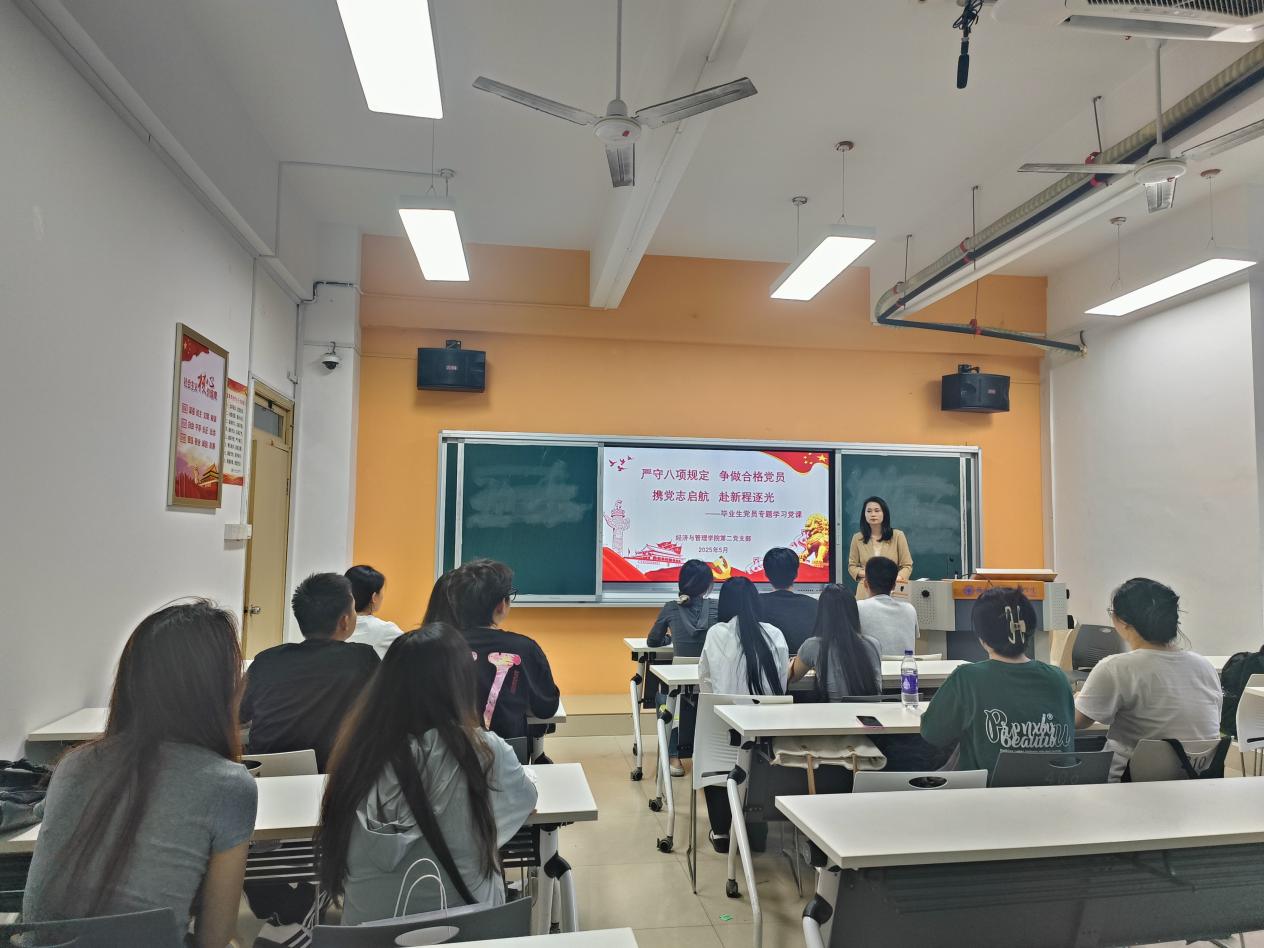 5月19日,經(jīng)濟與管理學(xué)院第一黨支部書記林麗萍以《學(xué)習(xí)中央八項規(guī)定精神 做自律擔(dān)當(dāng)新青年》為題,為第一黨支部畢業(yè)生黨員上了離校前的最后一次黨課。要求全體畢業(yè)生黨員把學(xué)習(xí)貫徹中央八項規(guī)定精神與踐行初心使命緊密結(jié)合,在新的學(xué)習(xí)、工作崗位上增強政治定力,做政治上的明白人;增強紀(jì)律定力,做紀(jì)律上的規(guī)矩人;增強責(zé)任定力,做工作上的實干人。希望畢業(yè)黨員走出校門、踏入社會亦勿忘黨員身份,永葆政治本色,在新的征程上書寫無愧于時代、無愧于人民的精彩篇章。