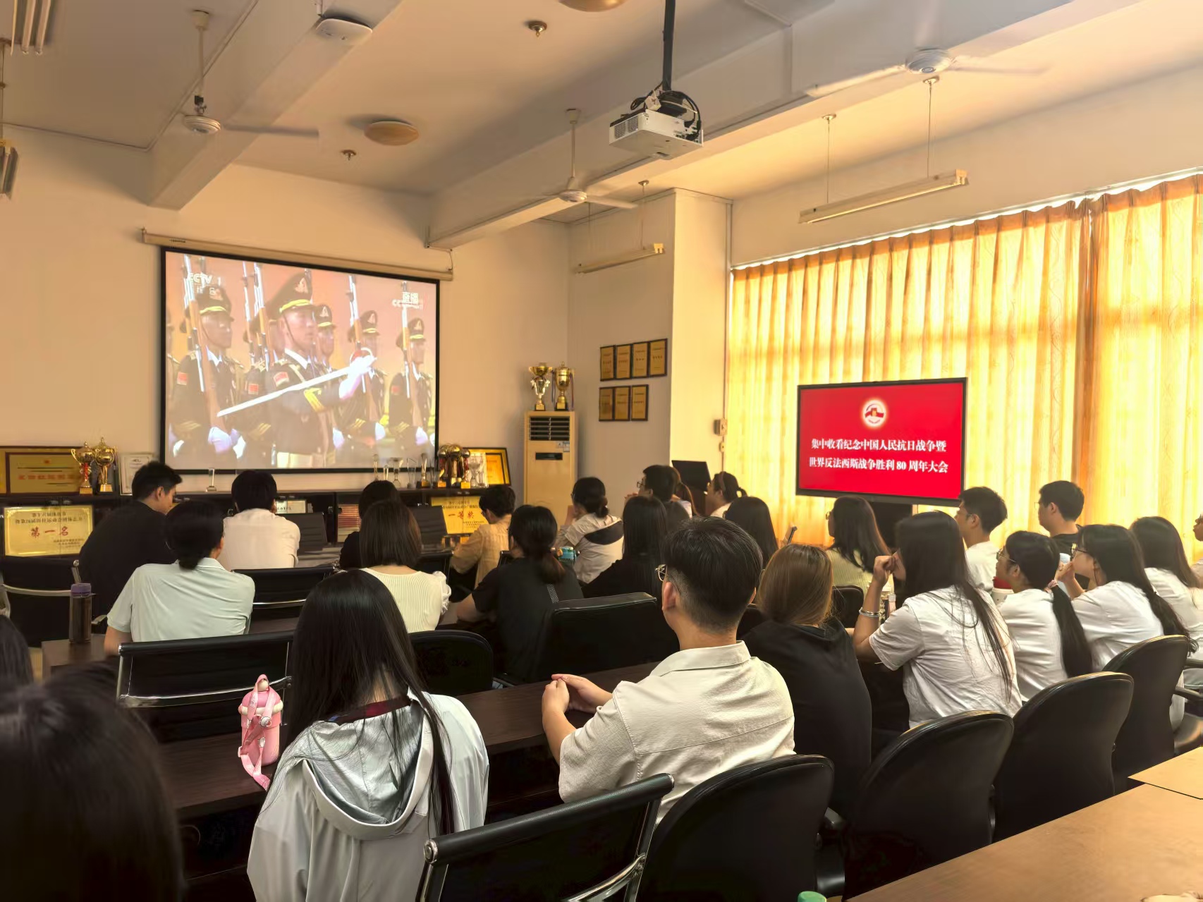 2025年9月3日上午,紀(jì)念中國人民抗日戰(zhàn)爭暨世界反法西斯戰(zhàn)爭勝利80周年大會在京隆重舉行。經(jīng)濟(jì)與管理學(xué)院積極組織師生收看大會直播,共同回顧歷史、致敬英雄,展望未來。閱兵儀式氣勢恢宏、震撼人心,在經(jīng)管師生中引發(fā)熱烈反響。