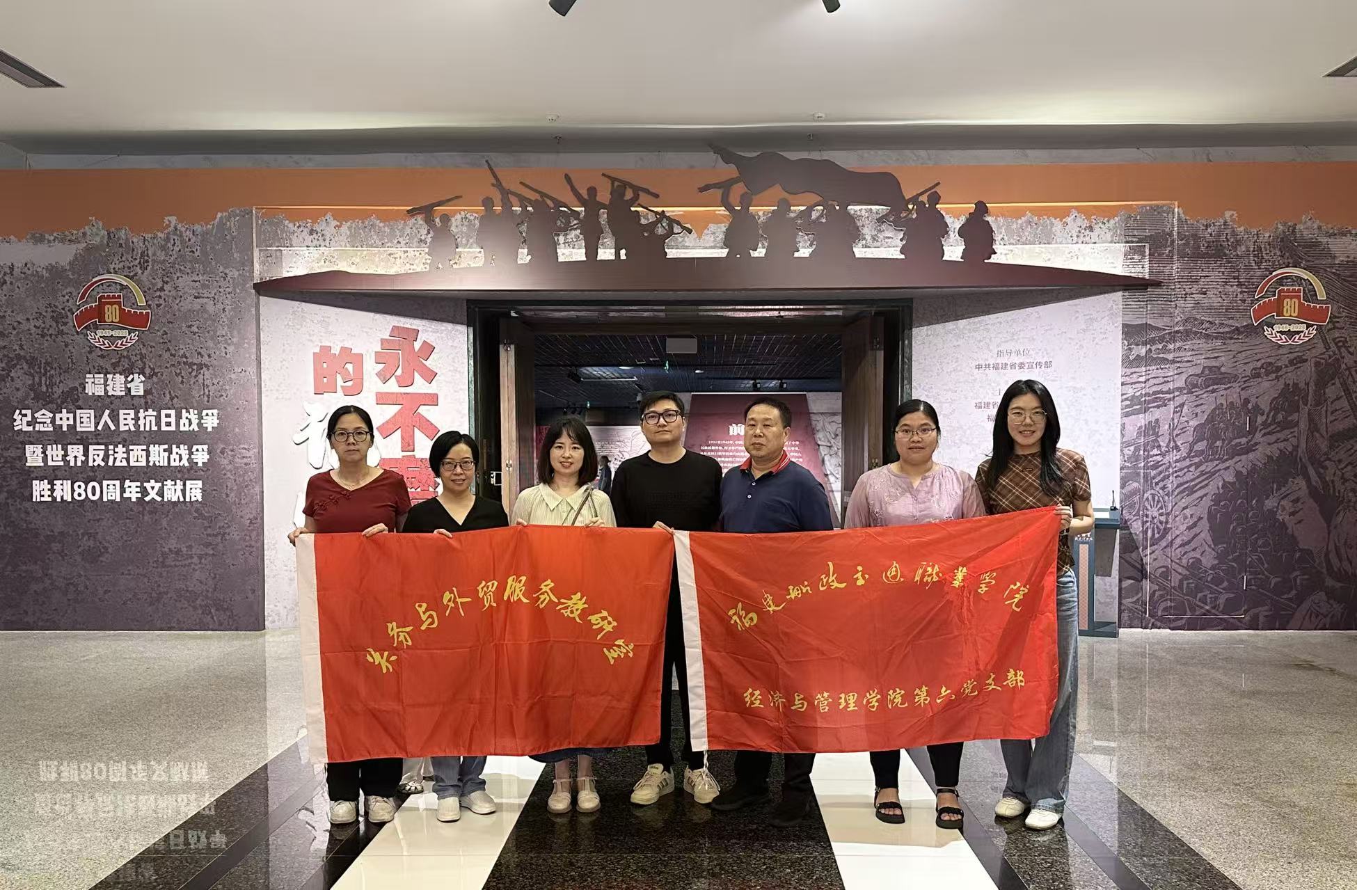 為紀(jì)念中國(guó)人民抗日戰(zhàn)爭(zhēng)暨世界反法西斯戰(zhàn)爭(zhēng)勝利80周年,9月5日,經(jīng)濟(jì)與管理學(xué)院第六黨支部暨關(guān)務(wù)與外貿(mào)服務(wù)教研室全體黨員前往福建省博物館,參觀“紀(jì)念中國(guó)人民抗日戰(zhàn)爭(zhēng)暨世界反法西斯戰(zhàn)爭(zhēng)勝利80周年文獻(xiàn)展”。