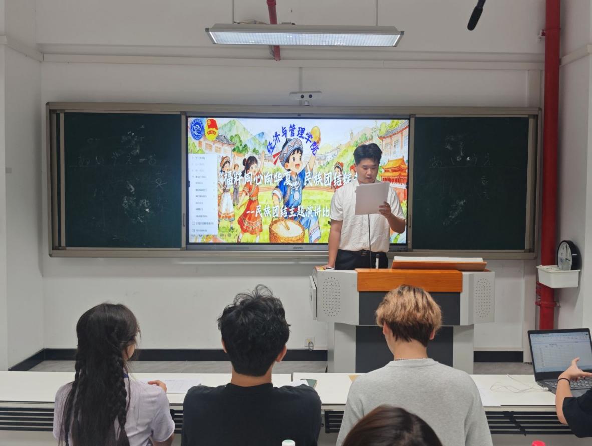 主題班會(huì)是本次活動(dòng)的開篇之作。班會(huì)上,由輔導(dǎo)員通過 PPT 展示,向同學(xué)們介紹了我國(guó)各民族的分布、人口、語言、風(fēng)俗習(xí)慣等基本情況,讓同學(xué)們對(duì)我國(guó)的民族大家庭有了更全面的了解。各民族在相互學(xué)習(xí)、交流融合中形成的獨(dú)特風(fēng)貌和共同價(jià)值追求。隨后,來自不同民族的同學(xué)紛紛上臺(tái)分享自己的民族故事、風(fēng)俗習(xí)慣以及在與其他民族同學(xué)相處中的溫馨故事,現(xiàn)場(chǎng)氣氛溫馨而熱烈。通過本次班會(huì),同學(xué)們不僅增強(qiáng)了民族團(tuán)結(jié)意識(shí),豐富了民族文化知識(shí),還營(yíng)造了團(tuán)結(jié)和諧的校園氛圍。在今后的工作中,我們將繼續(xù)深入開展民族團(tuán)結(jié)教育活動(dòng),不斷創(chuàng)新活動(dòng)形式,豐富活動(dòng)內(nèi)容,努力提高民族團(tuán)結(jié)教育的實(shí)效性。同時(shí),我們也將積極引導(dǎo)同學(xué)們將民族團(tuán)結(jié)的精神轉(zhuǎn)化為實(shí)際行動(dòng),在學(xué)習(xí)和生活中,關(guān)心關(guān)愛各民族同學(xué),共同為實(shí)現(xiàn)中華民族偉大復(fù)興的中國(guó)夢(mèng)而努力奮斗。