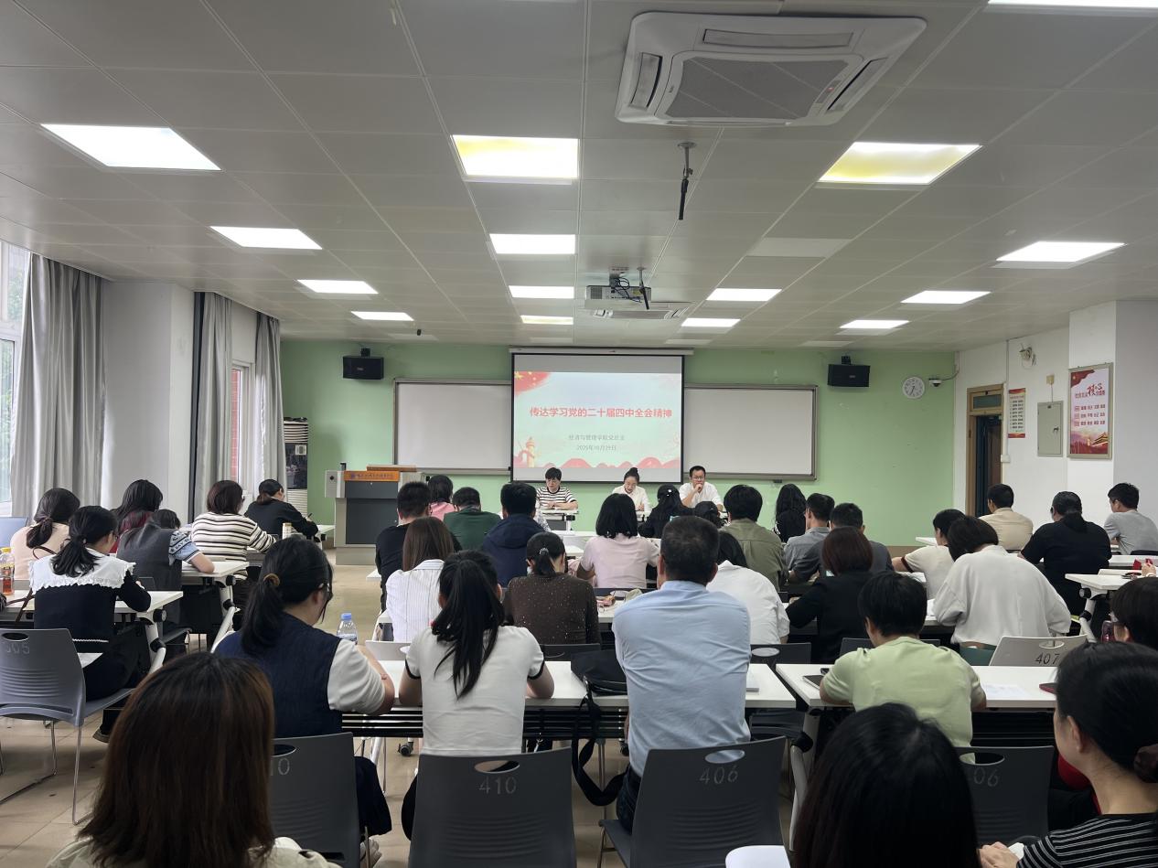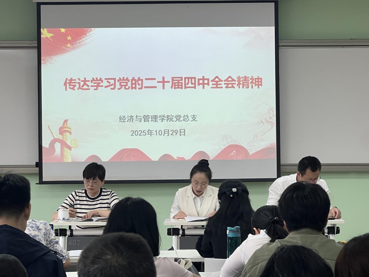為深入學(xué)習(xí)貫徹黨的二十屆四中全會精神,切實把全院黨員干部師生的思想和行動統(tǒng)一到全會精神上來,10月29日,經(jīng)濟與管理學(xué)院召開專題學(xué)習(xí)會,黨總支書記陳慧主持會議并傳達(dá)全會核心要義,全體教師參加會議。