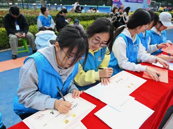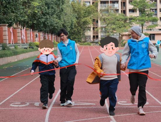 活動(dòng)中,志愿者分工協(xié)作,提供全程引導(dǎo)與陪伴。有的提前熟悉賽道,用清晰口令指引方向;有的協(xié)助完成檢錄、熱身等準(zhǔn)備工作;有的在終點(diǎn)及時(shí)提供攙扶與補(bǔ)給,保障了比賽安全有序進(jìn)行。盲校學(xué)生在賽場上奮勇爭先,志愿者則始終陪伴在側(cè),通過語言鼓勵(lì)和實(shí)際協(xié)助,與他們共同感受運(yùn)動(dòng)的激情與喜悅。