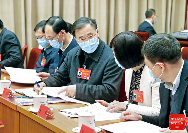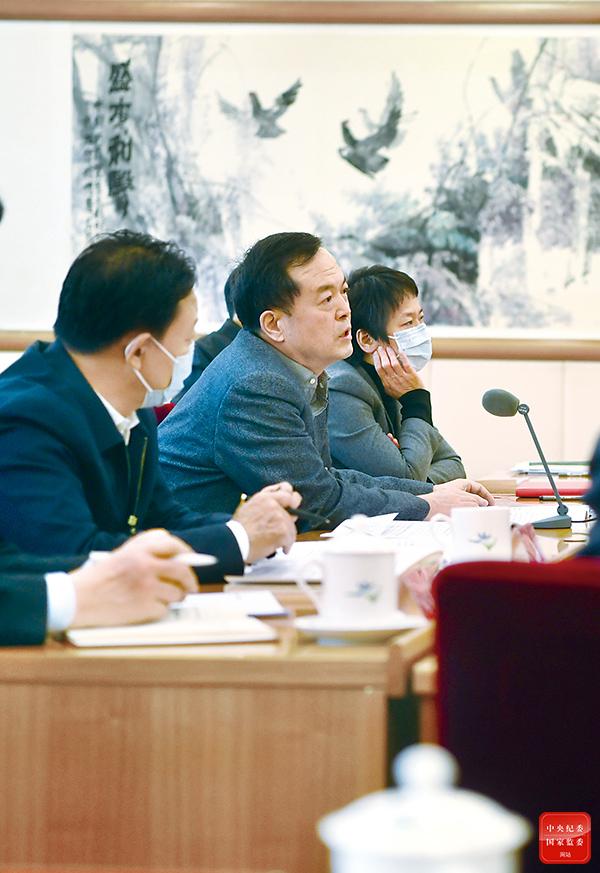 1月23日,十九屆中央紀委五次全會舉行分組會議。圖為與會人員就學習習近平總書記重要講話精神進行發(fā)言。張梓健 攝