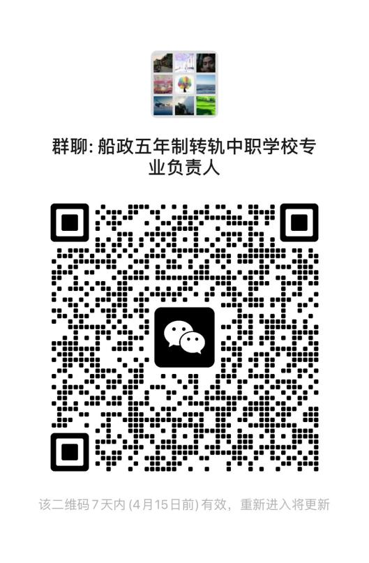 請各合作中職學校負責機房安裝的技術(shù)老師4月11日前加入微信群“船政五年制轉(zhuǎn)軌考核技術(shù)群”(圖一),各合作中職學校專業(yè)負責人4月11日前加入微信群“船政五年制轉(zhuǎn)軌中職學校專業(yè)負責人群”(圖二)。