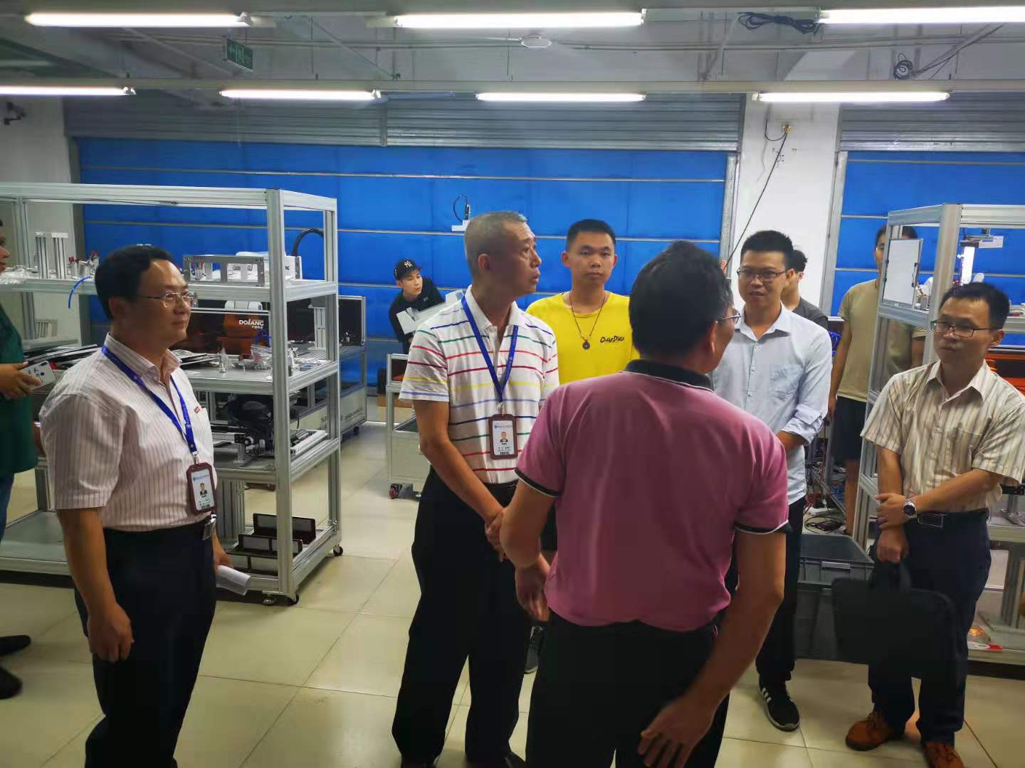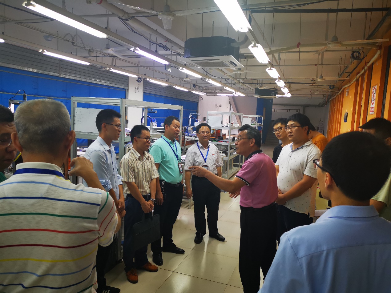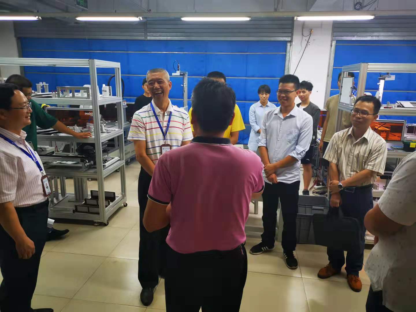 2019年10月14日下午,福建省工業(yè)和信息化廳陳庚處長(zhǎng)、顏真楠主任一行蒞臨我院指導(dǎo)第三屆全國(guó)工業(yè)機(jī)器人技術(shù)應(yīng)用技能大賽福建代表隊(duì)集訓(xùn)。學(xué)院黨委書記張海明、院長(zhǎng)陳錦輝與陳庚處長(zhǎng)一同來(lái)到集訓(xùn)現(xiàn)場(chǎng)檢查訓(xùn)練工作,詳細(xì)了解了集訓(xùn)工作的計(jì)劃、具體進(jìn)度安排和備賽情況,逐一查看了設(shè)備狀況、程序調(diào)試、機(jī)器人試運(yùn)行、安裝與維護(hù)等備賽環(huán)節(jié),與教練指導(dǎo)團(tuán)隊(duì)、集訓(xùn)隊(duì)員進(jìn)行了親切交談。在聽取了全面匯報(bào)后,陳庚處長(zhǎng)對(duì)本次集訓(xùn)工作給予了充分肯定,要求教練團(tuán)隊(duì)再接再厲,以踏石留痕、久久為功的精神,全力以赴做好競(jìng)賽準(zhǔn)備工作;勉勵(lì)集訓(xùn)隊(duì)員們刻苦訓(xùn)練,練好本領(lǐng),賽出風(fēng)格、賽出水平,為福建代表隊(duì)爭(zhēng)光添彩。張海明書記、陳錦輝院長(zhǎng)對(duì)本次集訓(xùn)也給予了高度肯定,要求機(jī)械系和實(shí)訓(xùn)中心全方位做好后勤和服務(wù),為福建代表隊(duì)創(chuàng)造優(yōu)良的訓(xùn)練條件和生活保障。