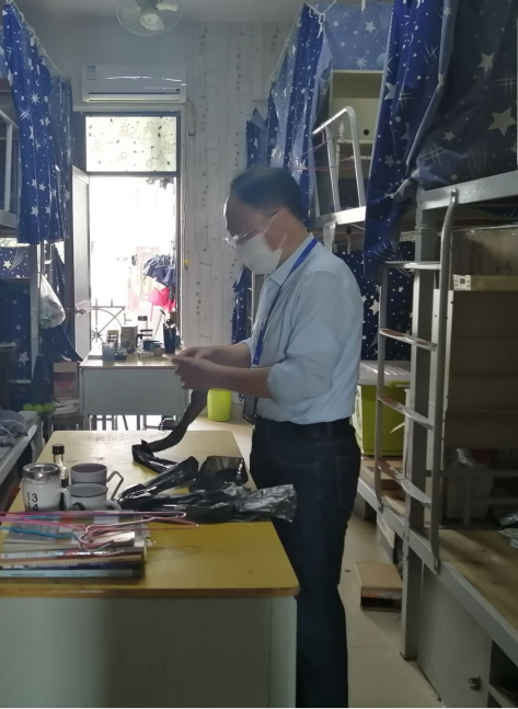 宿舍是畢業(yè)班學生返校后居住的場所,保證宿舍的安全與整潔也極為重要。書記帶領輔導員配合物業(yè)對宿舍進行細致打掃和整理,配合學校做好宿舍消殺工作。同時認真檢查宿舍設備,對有損壞的門窗、桌椅、電器等及時登記、報修,給返校的畢業(yè)生們提供了溫馨的宿舍居住環(huán)境,為畢業(yè)生返校排除安全隱患。