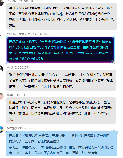 聽完劉警官的有趣宣講,同學(xué)們也感觸頗多,收獲了不少法律小知識(shí)。嘿嘿,其中不少同學(xué)就分享了他們的講座心得,讓我們一起來看看吧!