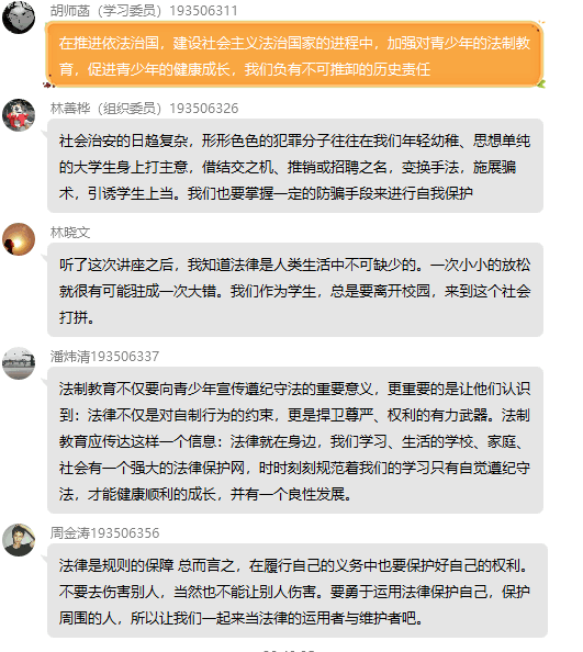 在這里不禁有同學(xué)會(huì)問:此次法治宣講用處有多大呢?在高速發(fā)展的信息時(shí)代,騙子的手段也在與時(shí)俱進(jìn),劉警官的此次宣講貼近我們現(xiàn)在的生活,是我們可能會(huì)遇到的情況,讓我們對(duì)社會(huì)上形形色色的案件更加的了解。這些看似簡(jiǎn)簡(jiǎn)單單的話語,蘊(yùn)含的都是實(shí)實(shí)在在的法律知識(shí),當(dāng)遇到我們無法處理的事情時(shí),最重要的就是要保護(hù)好自己,及時(shí)尋求法律的幫助。