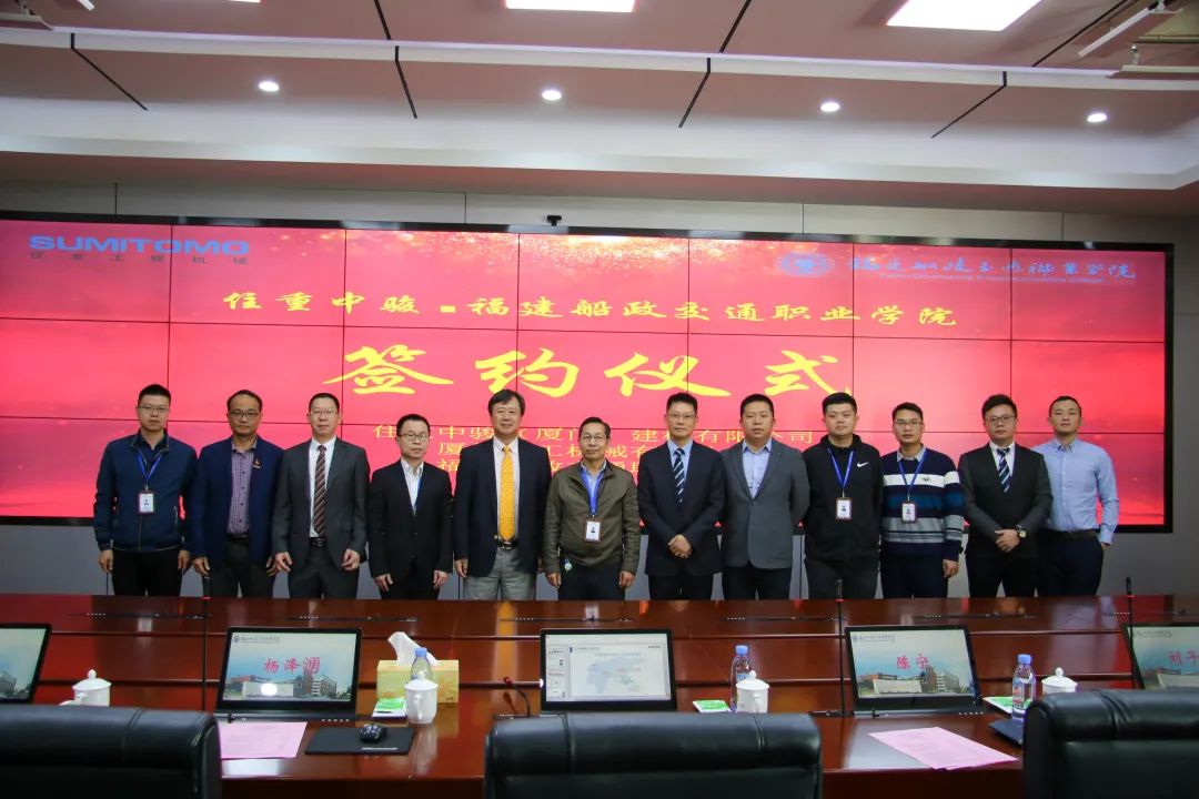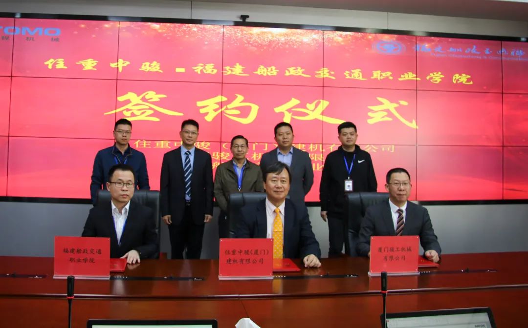 最后,在各位領(lǐng)導(dǎo)和全場(chǎng)師生的共同見(jiàn)證下,福建船政交通職業(yè)學(xué)院、住重中駿(廈門(mén))建機(jī)有限公司、廈門(mén)駿工機(jī)械有限公司簽訂了三方校企合作協(xié)議;福建船政交通職業(yè)學(xué)院黨委委員、副校長(zhǎng)張祖柱與住重中駿(廈門(mén))建機(jī)有限公司董事總經(jīng)理?xiàng)顫蓽ヒ黄馂楦=ù煌殬I(yè)學(xué)院住友工程機(jī)械人才培育基地揭牌。最后,在各位領(lǐng)導(dǎo)和全場(chǎng)師生的共同見(jiàn)證下,機(jī)械與智能制造學(xué)院楊開(kāi)懷院長(zhǎng)、住重中駿(廈門(mén))建機(jī)有限公司董事總經(jīng)理?xiàng)顫蓽?、廈門(mén)駿工機(jī)械有限公司總經(jīng)理陳普天先生簽訂了三方校企合作協(xié)議;福建船政交通職業(yè)學(xué)院黨委委員、副校長(zhǎng)張祖桂與住重中駿(廈門(mén))建機(jī)有限公司董事總經(jīng)理?xiàng)顫蓽ヒ黄馂楦=ù煌殬I(yè)學(xué)院住友工程機(jī)械人才培養(yǎng)基地揭牌。