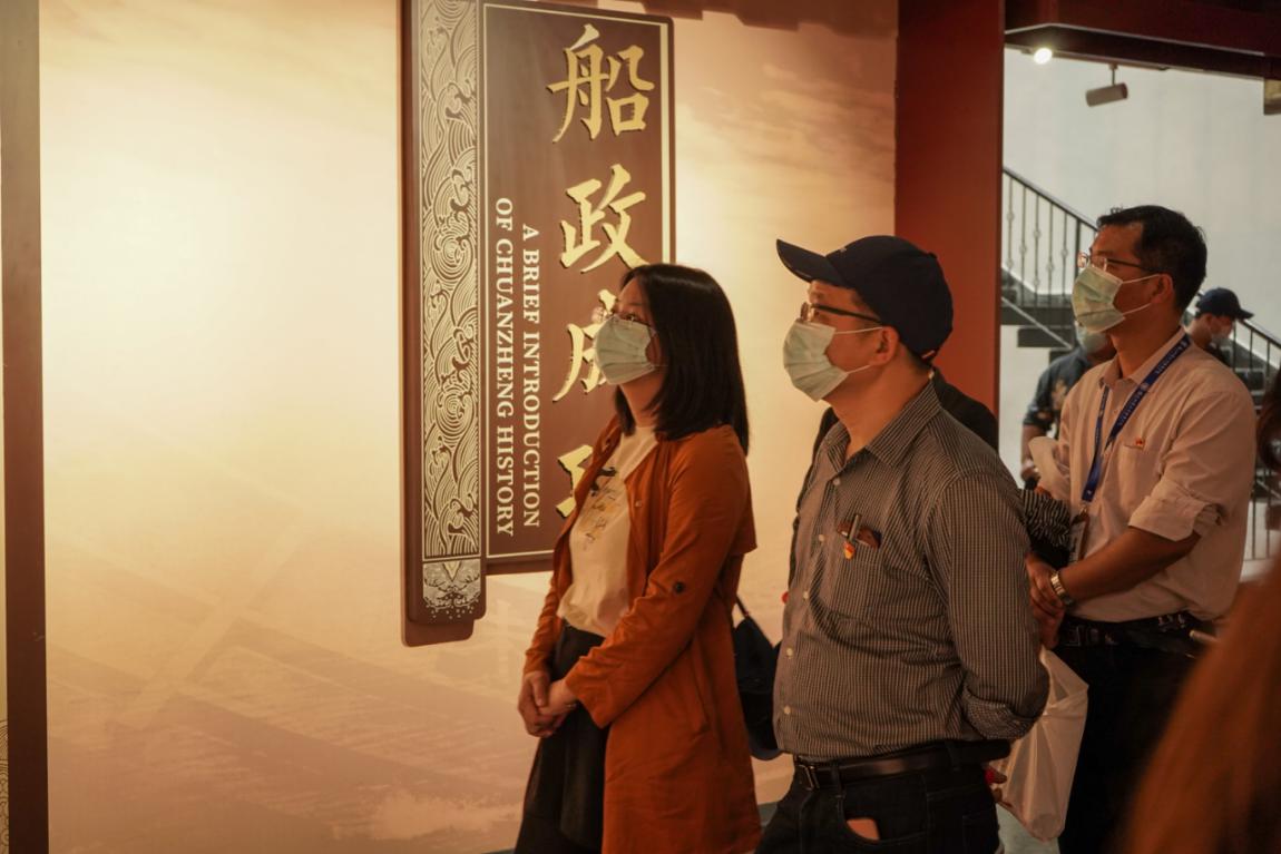 在中國船政文化博物館,黨員師生們跟隨講解員的步伐,聆聽船政百年歷史,開啟了船政精神之旅。師生們通過珍貴文物、圖片、模型等全面學(xué)習(xí)了中國船政在近代中國先進科技、新式教育、工業(yè)制造、西方經(jīng)典文化翻譯傳播等方面取得的豐碩成果?!白詮姟薄ⅰ白灾鳌?、“自造”、“自駛”、“求精”五種船政精神深深感染了在場師生,現(xiàn)場掌聲不斷。
