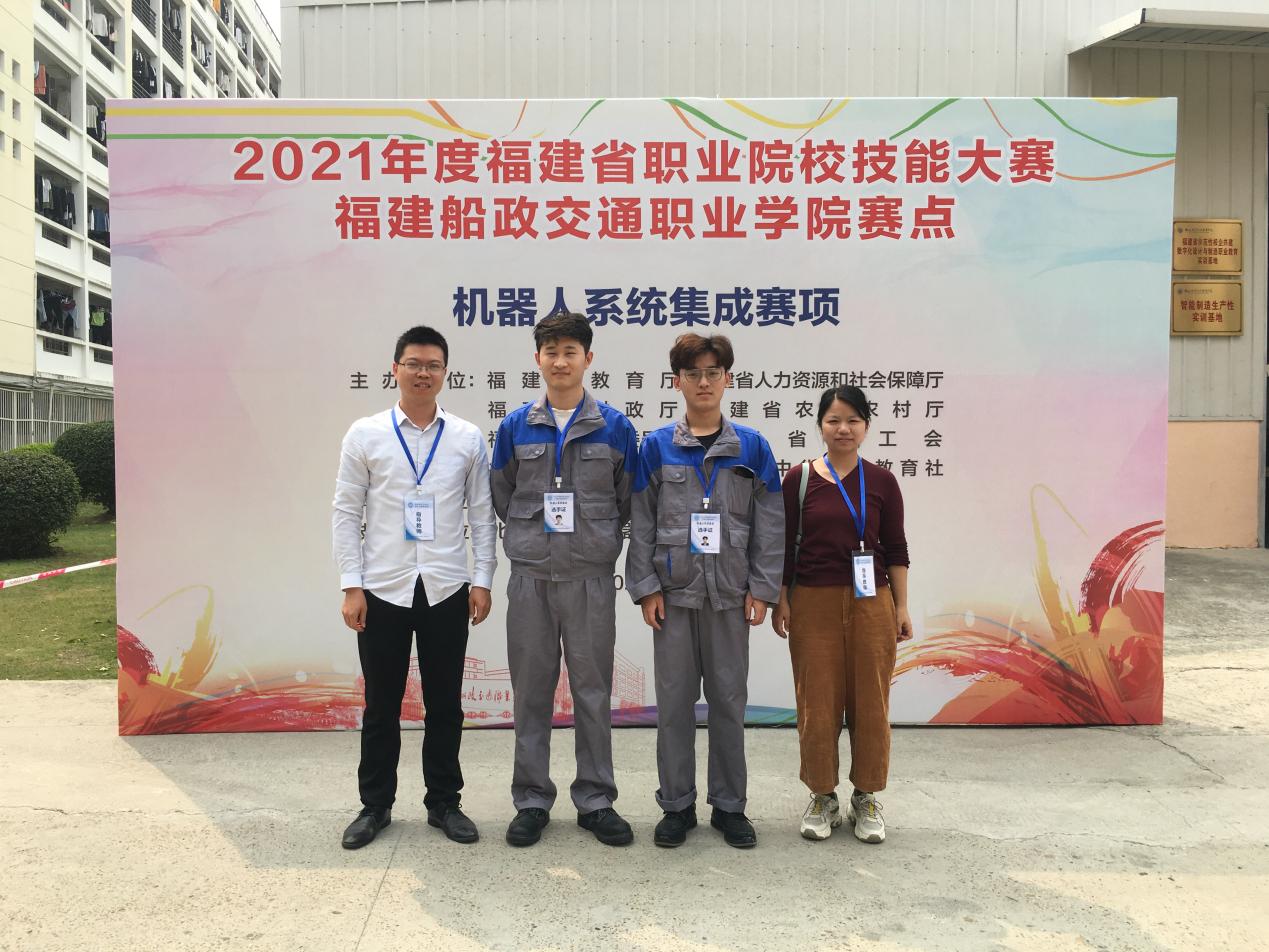 2021年4月1日至4月2日,來(lái)自全省11所高職院校的11支代表隊(duì)齊聚福建船政交通職業(yè)學(xué)院參加2021年福建省職業(yè)院校技能大賽(高職組)機(jī)器人系統(tǒng)集成賽項(xiàng)的比賽。經(jīng)過(guò)兩天緊張激烈的比賽,由機(jī)械與智能制造學(xué)院王水發(fā)、童曉薇兩位老師指導(dǎo)的韓冰峰、黃鑫鑫同學(xué)獲得一等獎(jiǎng)。