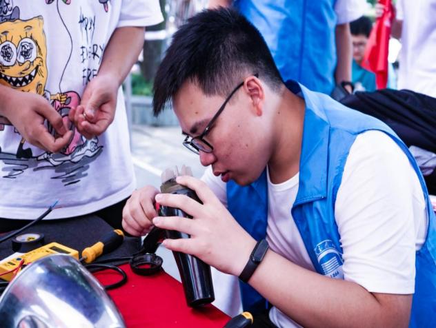 此次活動(dòng)由工程機(jī)械教研室王明春老師與電氣自動(dòng)化教研室林恒青老師作為“械小幫”志愿服務(wù)隊(duì)指導(dǎo)老師,對(duì)本次義務(wù)家電維修活動(dòng)進(jìn)行協(xié)助指導(dǎo)。志愿服務(wù)隊(duì)員們?cè)谔岣呃碚撝R(shí)的同時(shí),通過(guò)對(duì)電器反復(fù)拆裝、對(duì)機(jī)械故障進(jìn)行診斷維修,提升自身實(shí)操能力。王明春老師同時(shí)對(duì)在維修過(guò)程中容易忽略的安全問(wèn)題進(jìn)行一一列舉,悉心教導(dǎo)同學(xué)們?nèi)绾螌?duì)安全隱患進(jìn)行排除。
