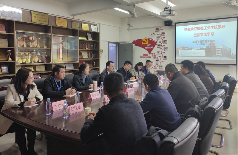 12月9日廈門集美工業(yè)學(xué)校先進(jìn)制造產(chǎn)業(yè)系領(lǐng)導(dǎo)和相關(guān)老師在教務(wù)處長孫躍崗帶領(lǐng)下,來我院調(diào)研交流職業(yè)教育相關(guān)建設(shè)策略,深入探討中高職銜接問題。機械與智能制造學(xué)院院長楊開懷,副院長王水發(fā)及學(xué)院相關(guān)專業(yè)老師參加座談。
