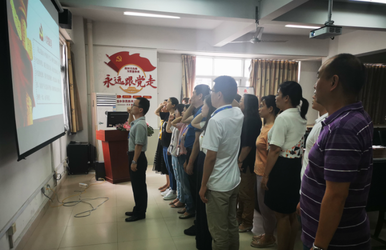 “我志愿加入中國共產(chǎn)黨,擁護(hù)黨的綱領(lǐng),遵守黨的章程,履行黨員義務(wù)……”,在支部書記楊開懷同志的帶領(lǐng)下,第二黨支部全體黨員舉起右拳,莊嚴(yán)宣誓,重溫入黨時(shí)對黨和人民作出的莊嚴(yán)承諾。重溫入黨誓詞,旨在進(jìn)一步強(qiáng)化黨員意識(shí),增強(qiáng)黨性觀念,筑牢政治忠誠,堅(jiān)定為共產(chǎn)主義事業(yè)奮斗終身的理想信念,永葆共產(chǎn)黨員的初心使命。