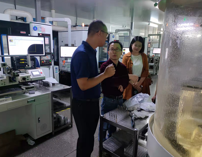 學(xué)院一行先后參觀了企業(yè)產(chǎn)品研發(fā)室、生產(chǎn)車間、設(shè)備生產(chǎn)組裝車間等,并同企業(yè)代表開展座談交流。會上,校企雙方圍繞開拓就業(yè)渠道和就業(yè)崗位、開展企業(yè)人才需求調(diào)查等方面展開交流,并期望校企雙方能夠加強(qiáng)科學(xué)研究、人才培養(yǎng)、學(xué)術(shù)交流和教學(xué)實踐等方面的合作,取得互利共贏的豐碩成果。
