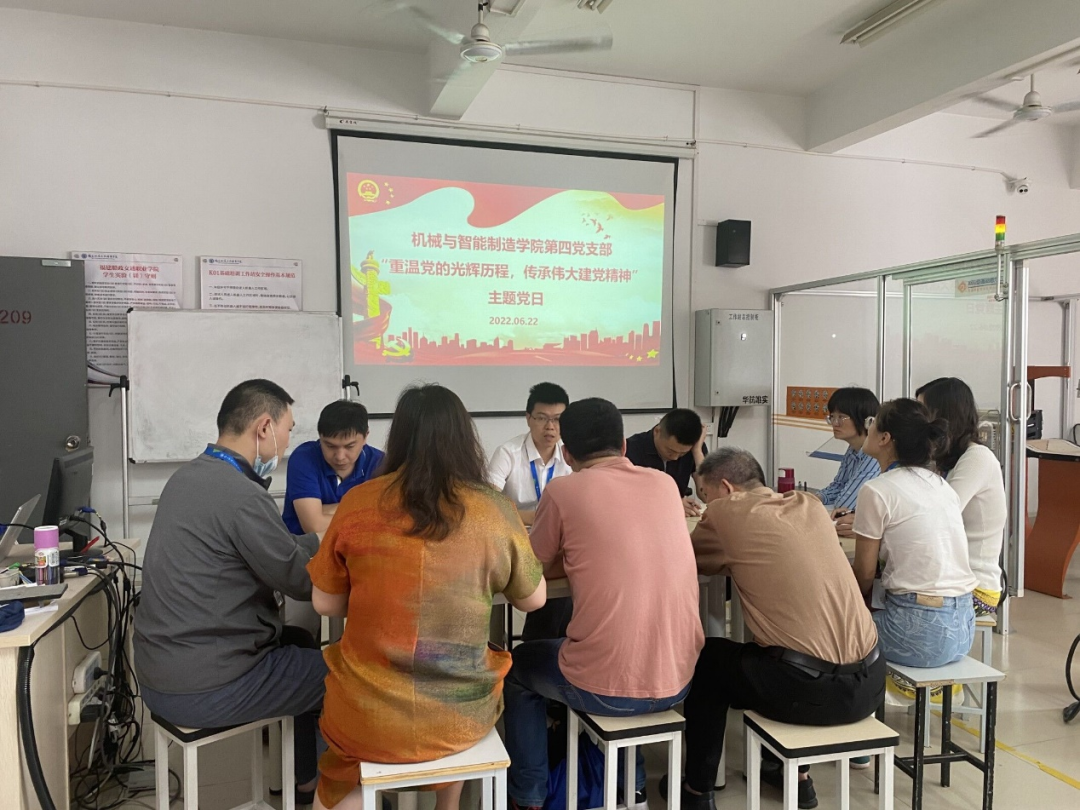 2022年06月22日,機(jī)械與智能制造學(xué)院第四黨支部在26#209召開以“重溫黨的光輝歷程,傳承偉大建黨精神”為主題的支部黨日活動(dòng),黨支部書記王水發(fā)同志帶領(lǐng)大家共同學(xué)習(xí)領(lǐng)悟。