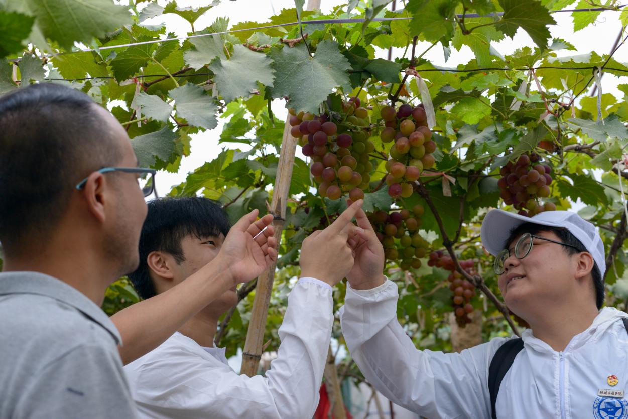 隨后,大家走進了荔林水鄉(xiāng)園林,在果園里大家看到了荔枝,文旦柚等經(jīng)濟作物,陳貴清副院長帶我們下到葡萄棚里去考察,深入了解當?shù)胤鲐毘晒瑢W習當?shù)胤鲐毚胧?,感受扶貧采摘園助力鄉(xiāng)村振興所發(fā)揮的巨大作用。