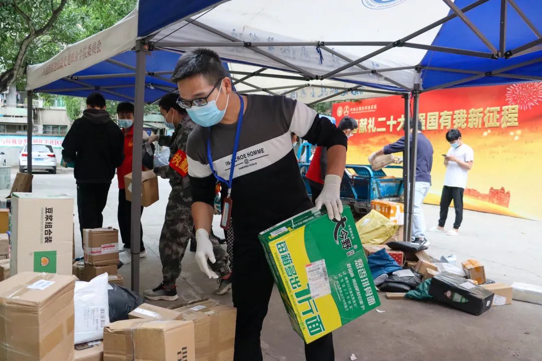 我們隔離病毒,但不隔離愛。機(jī)械與智能制造學(xué)院半軍事化管理委員會(huì)及黨員先鋒崗的志愿者們?cè)缭绲谋銇淼搅诵^(qū)門口進(jìn)行學(xué)生快遞的病毒消殺以及分揀工作,他們按取件碼將快遞歸類,便于同學(xué)們進(jìn)行尋找。與此同時(shí),機(jī)械與智能制造學(xué)院輔導(dǎo)員許思維、蘇梅貴以及吳夢(mèng)煒紛紛加入到此次活動(dòng)中,助力此次活動(dòng)的順利開展。輔導(dǎo)員們紛紛表示:雖然此次工作所需耗費(fèi)人力物力精力較大,但我們?nèi)孕璞兄盀閷W(xué)生辦實(shí)事”的工作態(tài)度,幫助學(xué)生們解決困難,而不是逃避困難,特別在這段特殊時(shí)期中,我們要與學(xué)生同舟共濟(jì),共克時(shí)艱。