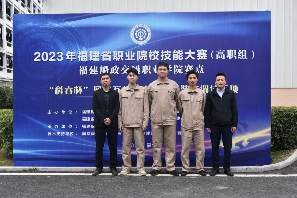 2023年3月10日至12日,來(lái)自全省10所高職院校的代表隊(duì)齊聚我院角逐2023年度福建省職業(yè)院校技能大賽——“科睿杯”風(fēng)光互補(bǔ)發(fā)電系統(tǒng)安裝與調(diào)試賽項(xiàng),各代表隊(duì)領(lǐng)隊(duì)、選手及指導(dǎo)教師共53人報(bào)名參加了比賽。經(jīng)過(guò)三天緊張激烈的比賽,我院戴立慶、李烈熊兩位老師指導(dǎo),陳敏南、張紀(jì)星、呂振三名同學(xué)組成的代表隊(duì)勇奪比賽第一名。