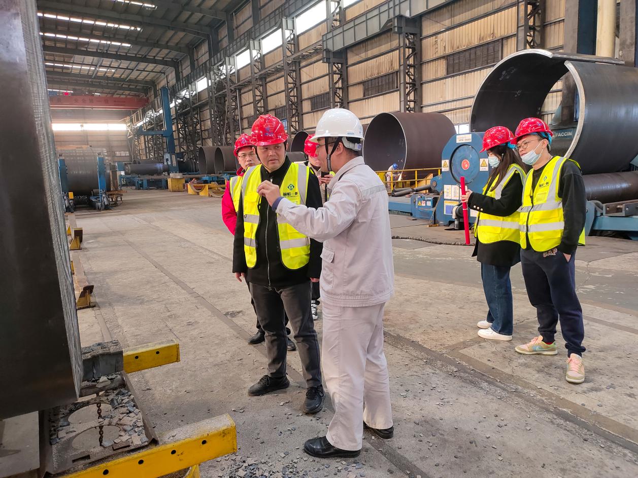福建福船一帆新能源裝備制造有限公司是福建省具有風力發(fā)電塔筒和相關重型鋼構件生產、制造、運輸能力的制造商,致力于高端智造和大規(guī)模海上風電運維一體化綠色能源研發(fā)。在參觀過程中,團隊一行對企業(yè)的信息化控制中心進行了深入了解,了解到企業(yè)實現(xiàn)了高精尖的信息化控制,從而提高了焊接的質量和效率。在參觀起吊區(qū)、裝配區(qū)和涂裝系統(tǒng)集控中心時,學院代表團隊詳細了解了企業(yè)內部的設備和生產線的組裝加工流程,贊嘆企業(yè)的先進設備和高效生產。