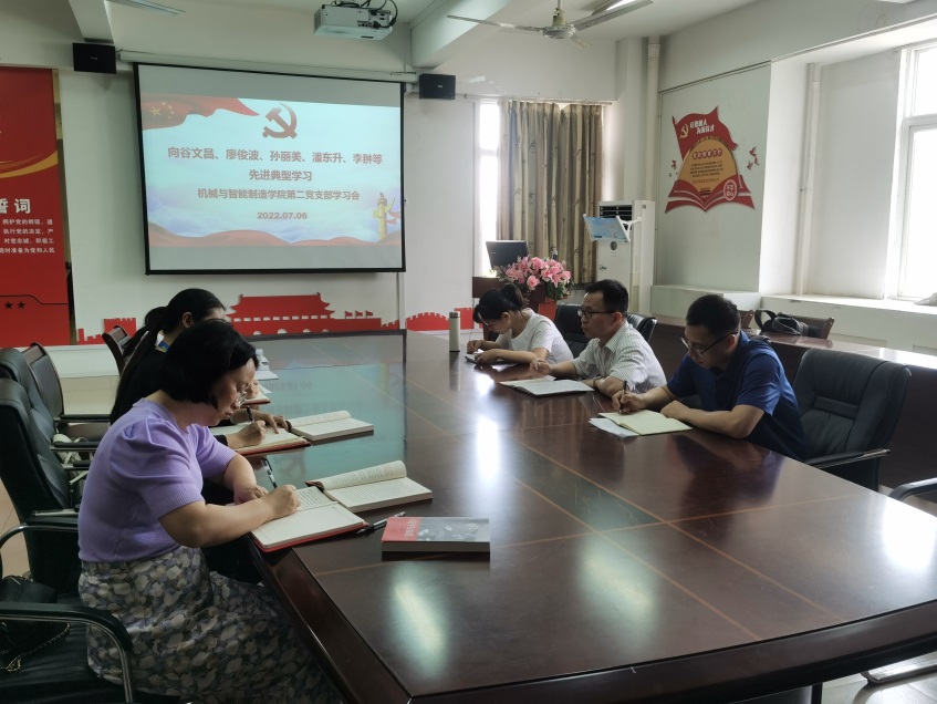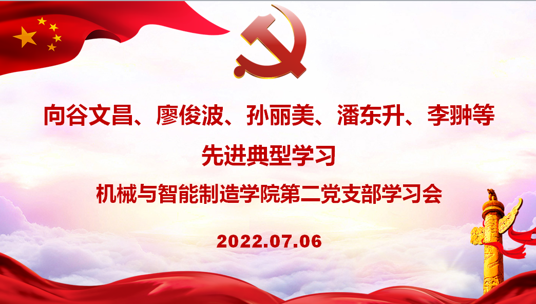 2022年7月6日,機械與智能制造學院第二黨支部召開支部學習大會,學習李翀、谷文昌、廖俊波、孫麗美、潘東升等先進典型事跡。