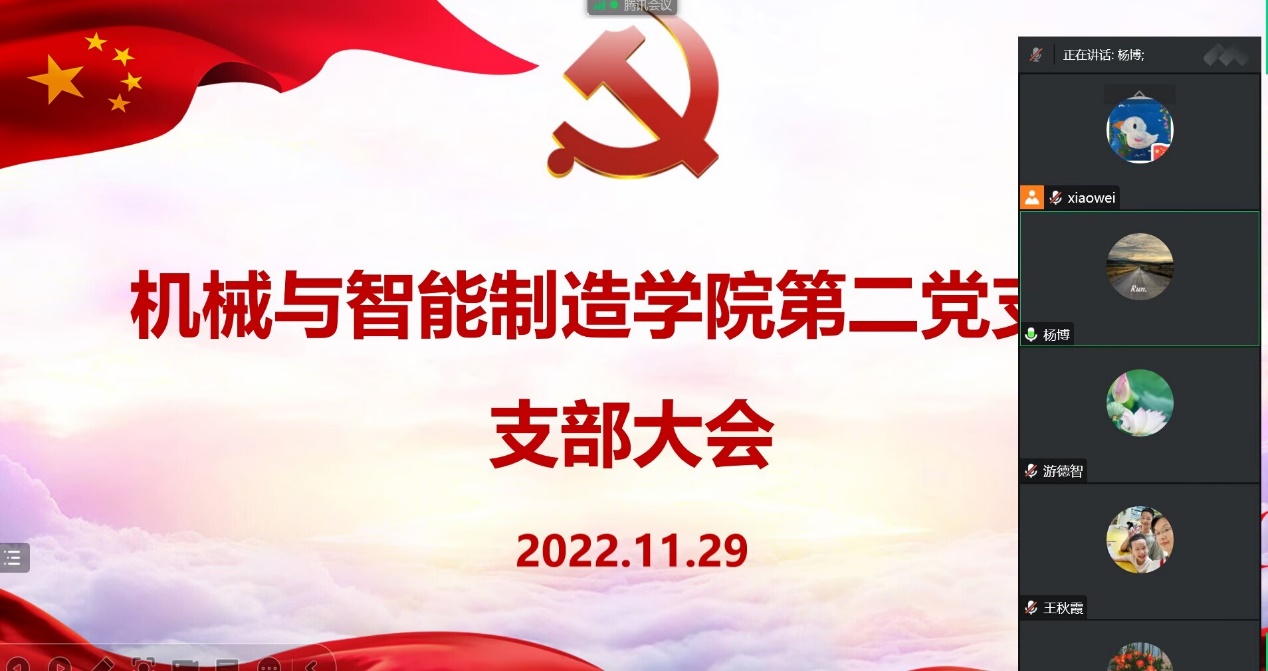 2022年11月29日,機(jī)械與智能制造學(xué)院第二黨支部在線上召開(kāi)支部學(xué)習(xí)大會(huì),學(xué)習(xí)《習(xí)近平:在二十屆中央政治局常委同中外記者見(jiàn)面時(shí)的講話》、《中國(guó)共產(chǎn)黨章程》(中國(guó)共產(chǎn)黨第二十次全國(guó)代表大會(huì)部分修改,2022年10月22日通過(guò))、《孫春蘭:辦好人民滿意的教育》、《省委常委會(huì)召開(kāi)會(huì)議認(rèn)真學(xué)習(xí)貫徹習(xí)近平總書記重要講話重要指示精神 周祖翼主持并研究貫徹落實(shí)措施》等文件精神。