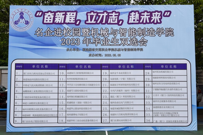 為扎實(shí)開展學(xué)習(xí)貫徹習(xí)近平新時代中國特色社會主義思想主題教育,牢牢把握“學(xué)思想、強(qiáng)黨性、重實(shí)踐、建新功”的總要求,貫徹落實(shí)黨中央、國務(wù)院關(guān)于高校畢業(yè)生就業(yè)工作的決策部署,扎實(shí)推進(jìn)我院2023屆畢業(yè)生就業(yè)工作,積極響應(yīng)團(tuán)中央號召開展“共青團(tuán)促進(jìn)大學(xué)生就業(yè)行動”,為用人單位和畢業(yè)生搭建供需橋梁,服務(wù)大學(xué)生實(shí)習(xí)就業(yè)和融入社會,我院舉辦“福建船政交通職業(yè)學(xué)院機(jī)械與智能制造學(xué)院2023屆畢業(yè)生夏季雙選會”,為我院即將畢業(yè)的2023屆畢業(yè)生聚合優(yōu)質(zhì)就業(yè)資源,引導(dǎo)同學(xué)們積極投身社會實(shí)踐、掌握求職技巧,促進(jìn)畢業(yè)生高質(zhì)量就業(yè)。