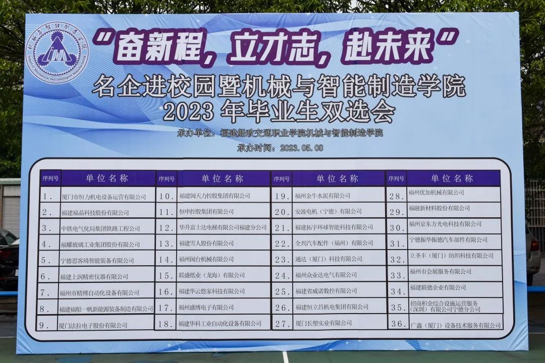 為扎實(shí)開展學(xué)習(xí)貫徹習(xí)近平新時(shí)代中國特色社會(huì)主義思想主題教育,牢牢把握“學(xué)思想、強(qiáng)黨性、重實(shí)踐、建新功”的總要求,貫徹落實(shí)黨中央、國務(wù)院關(guān)于高校畢業(yè)生就業(yè)工作的決策部署,扎實(shí)推進(jìn)我院2023屆畢業(yè)生就業(yè)工作,積極響應(yīng)團(tuán)中央號召開展“共青團(tuán)促進(jìn)大學(xué)生就業(yè)行動(dòng)”,為用人單位和畢業(yè)生搭建供需橋梁,服務(wù)大學(xué)生實(shí)習(xí)就業(yè)和融入社會(huì),我院舉辦“福建船政交通職業(yè)學(xué)院機(jī)械與智能制造學(xué)院2023屆畢業(yè)生夏季雙選會(huì)”,為我院即將畢業(yè)的2023屆畢業(yè)生聚合優(yōu)質(zhì)就業(yè)資源,引導(dǎo)同學(xué)們積極投身社會(huì)實(shí)踐、掌握求職技巧,促進(jìn)畢業(yè)生高質(zhì)量就業(yè)。