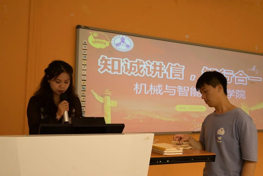 為深入貫徹落實(shí)習(xí)近平總書記關(guān)于教育的重要論述,落實(shí)立德樹人根本任務(wù),大力增強(qiáng)青年學(xué)生的誠信意識、責(zé)任意識和金融防詐騙意識,引導(dǎo)學(xué)生樹立感恩誠信的價值觀和科學(xué)理性的消費(fèi)觀,增強(qiáng)學(xué)生砥礪奮進(jìn)的使命意識和責(zé)任擔(dān)當(dāng)。機(jī)械與智能制造學(xué)院于福道園2號樓1-1教室開展“知誠講信,知行合一”知識競答活動。